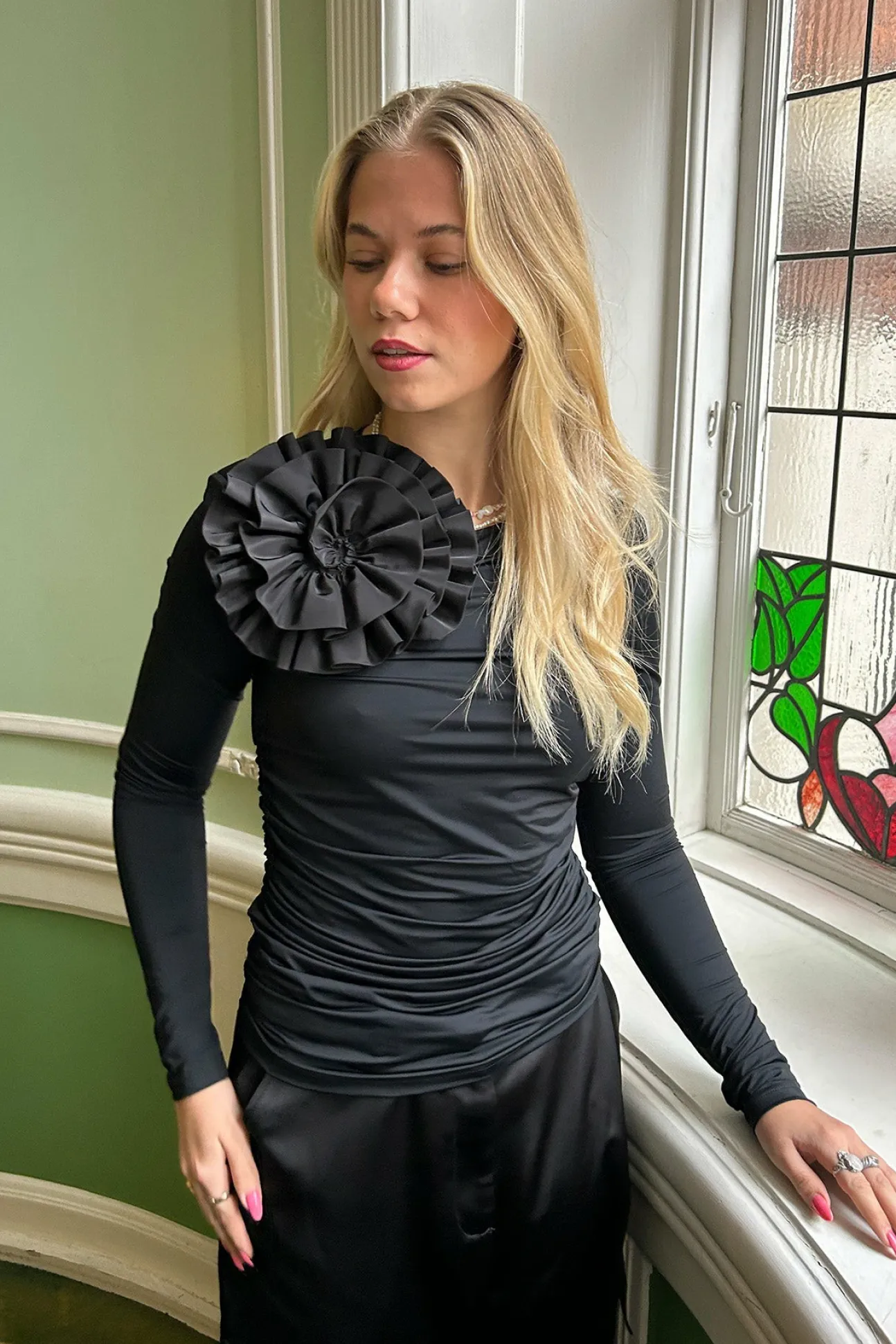Elegant Slim Fit Bluse I Et Strækbart Stof Med Masser Af Rynk For At Fremhæve Din Silhuet. Blusen Er Dekoreret Med En Stor Oversized Blomst, Der Tilføjer Et Strejf Af Avantgarde Flair. Fremstillet Af 86% Nylon Og 14% Elastan.