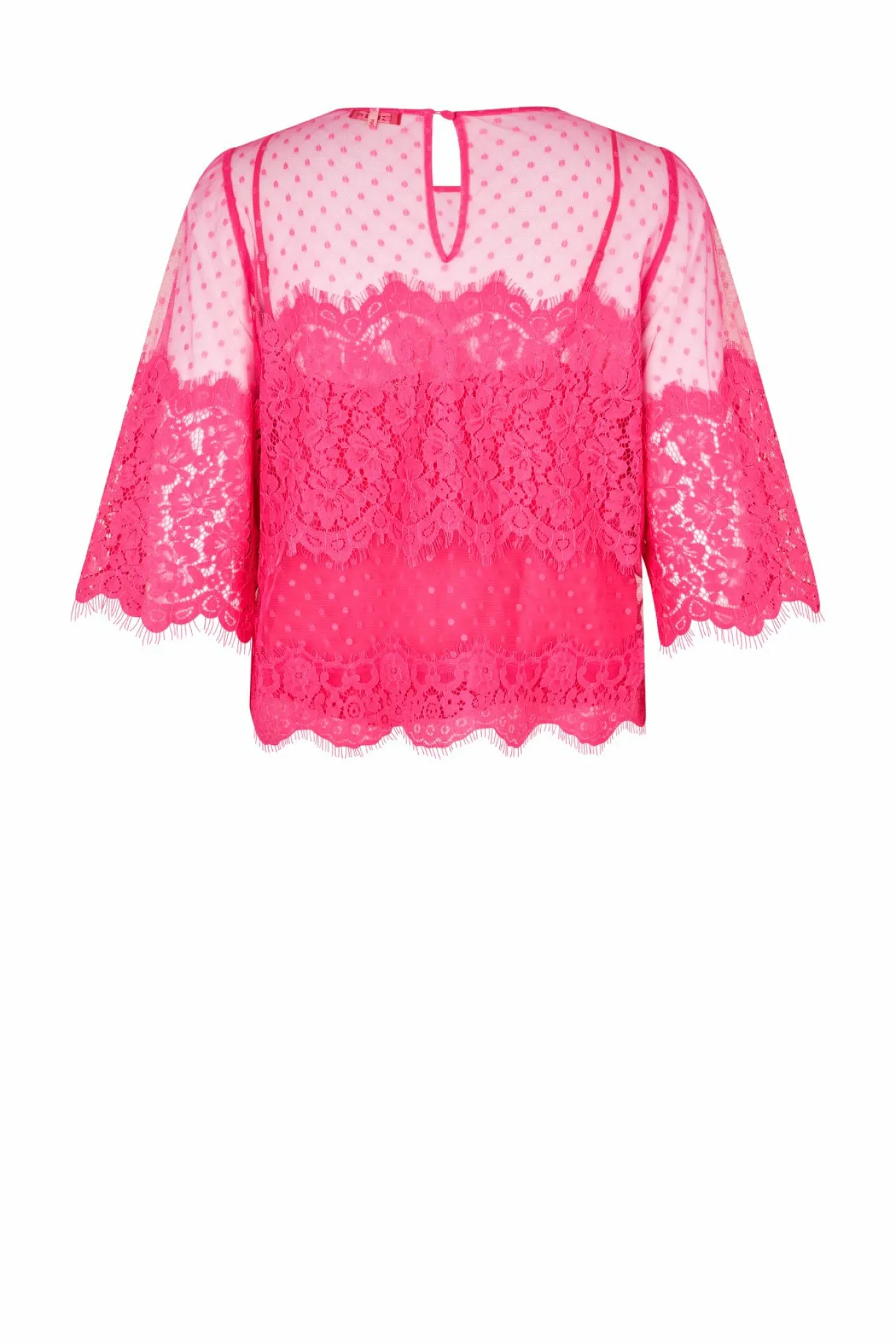 Super Cool Bluse I Et Sofistikeret Halvgennemsigtigt Stof, Udsmykket Med Blondedetaljer Og Ledsaget Af Et Matchende Foer…