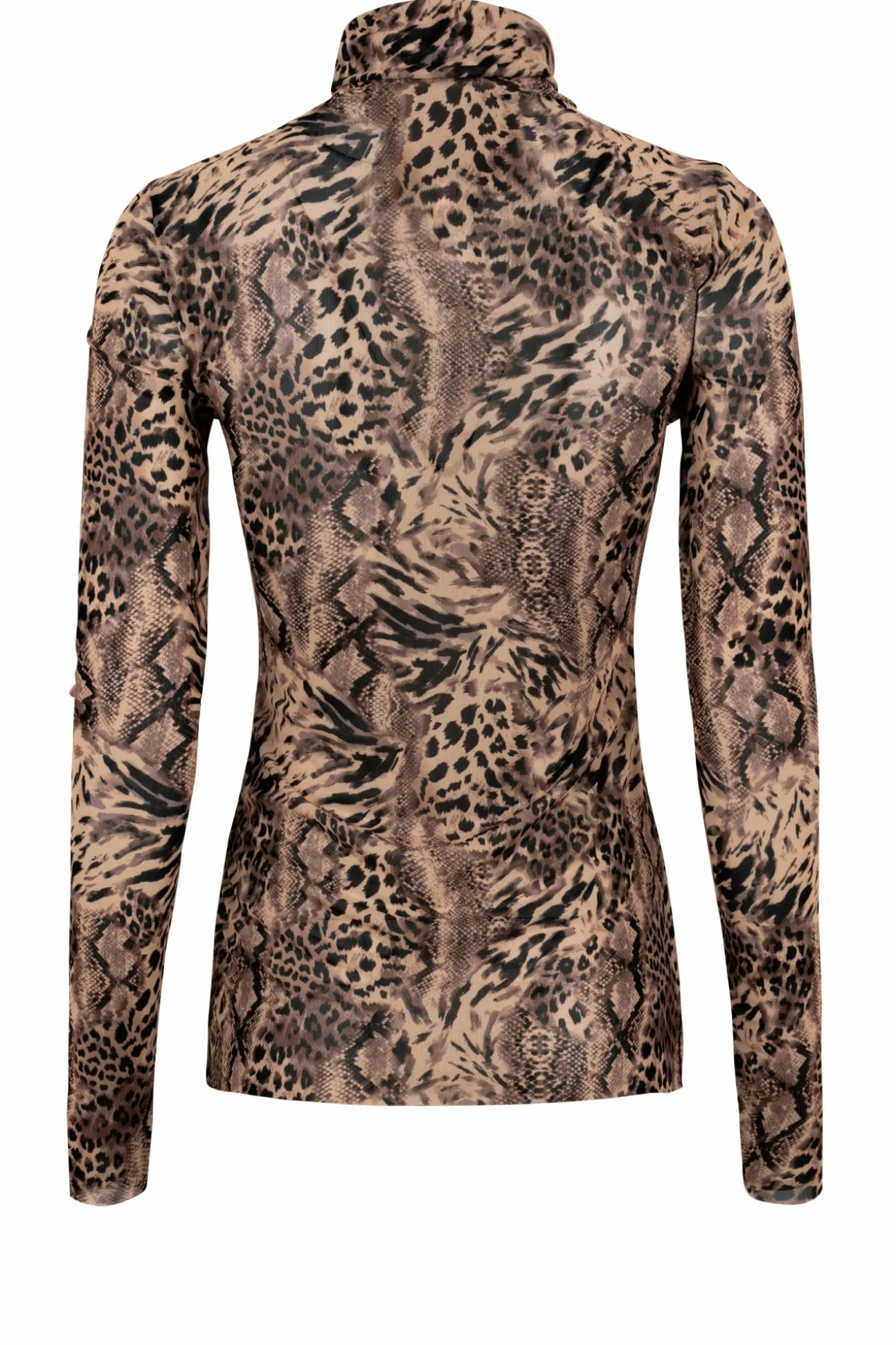 Tætsiddende Bluse I Seje Prints Med Høj Rullekrave. Lavet Af 92% Genanvendt Polyester Fra Plastikaffald Og 8% Elastan.
