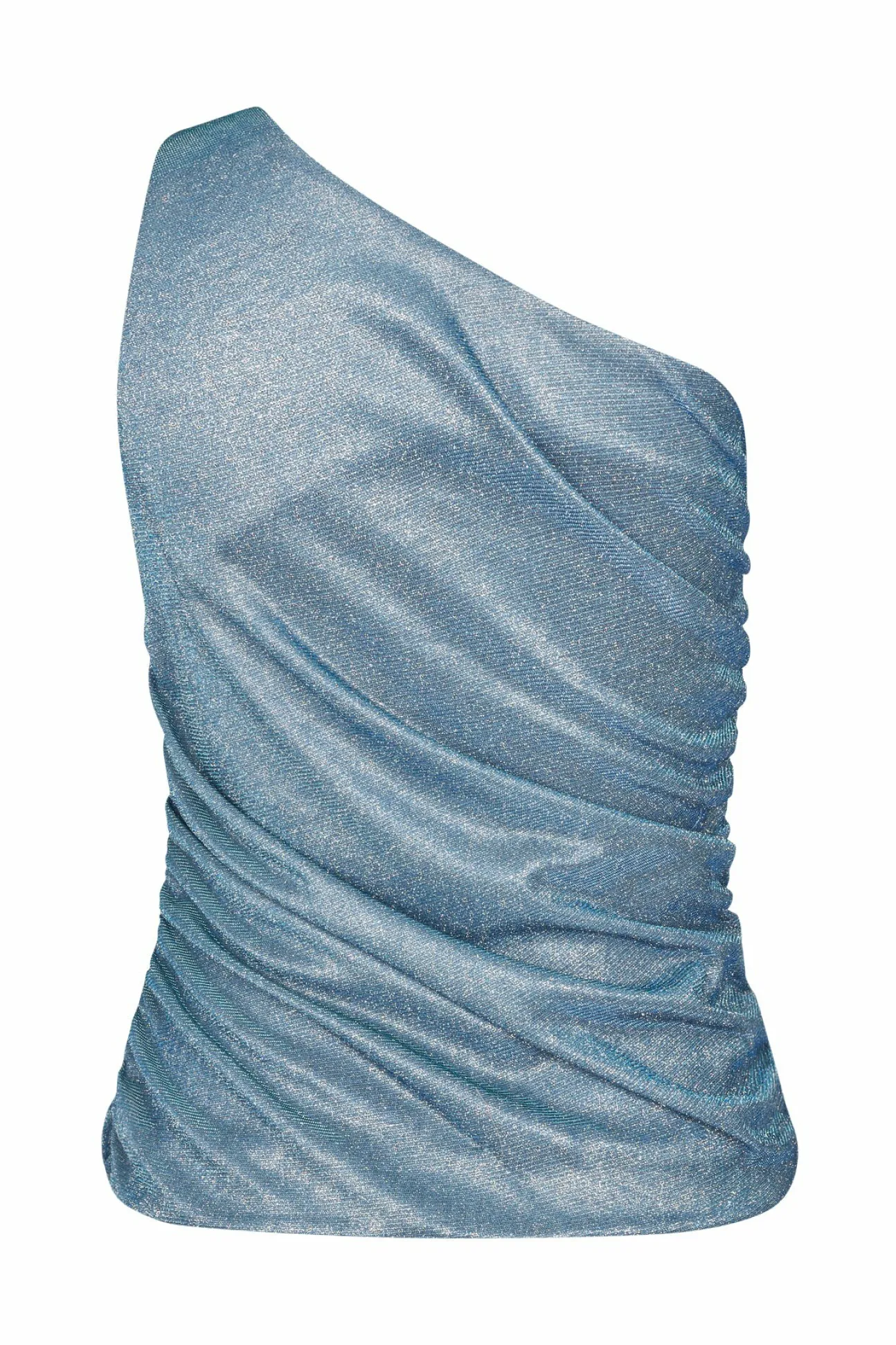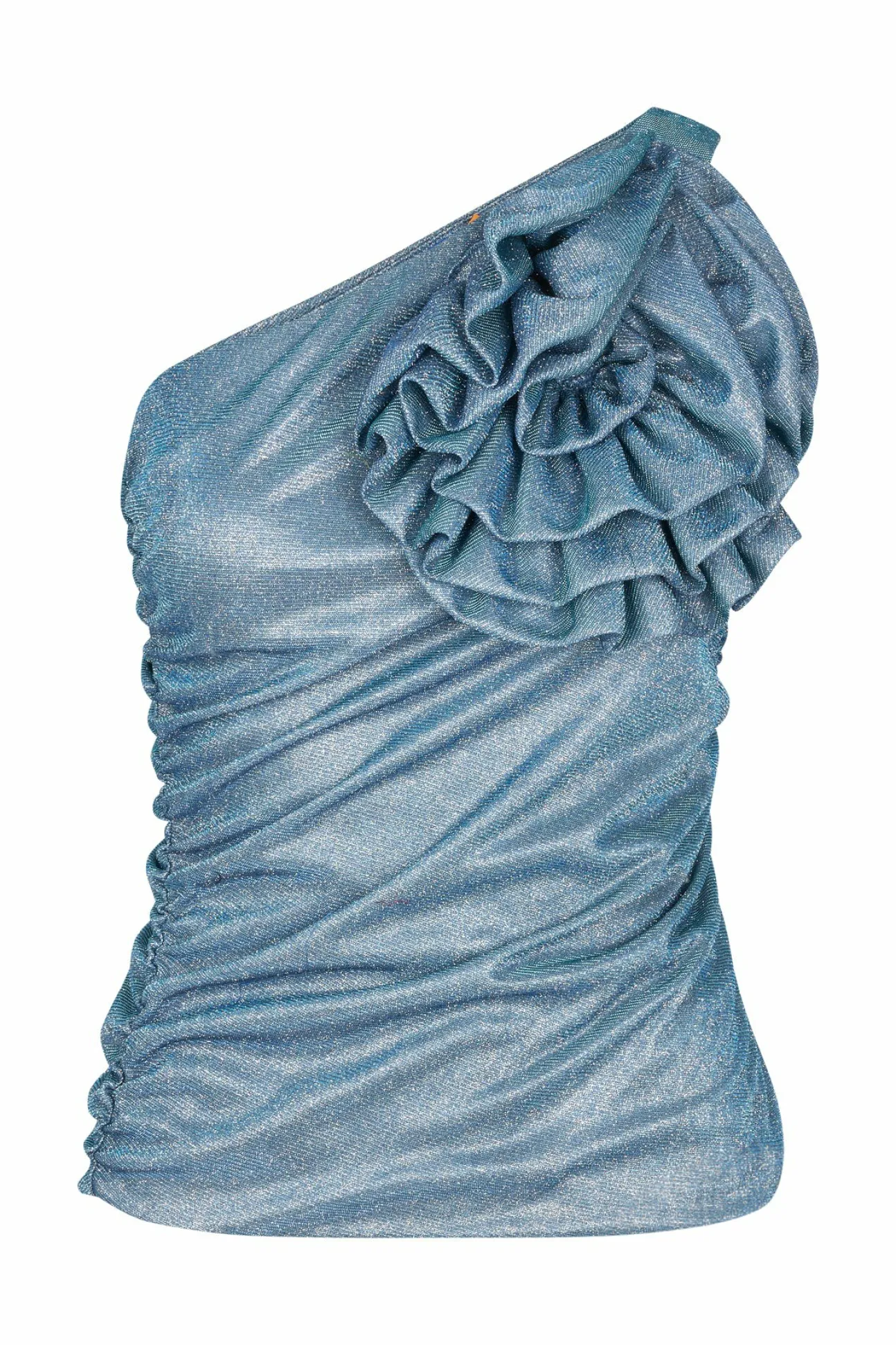 Blød, One-Shoulder Jersey Top Med Oversized Blomst. Fremstillet Af 52% Genanvendt Polyester Og 48% Metallisk Polyester.