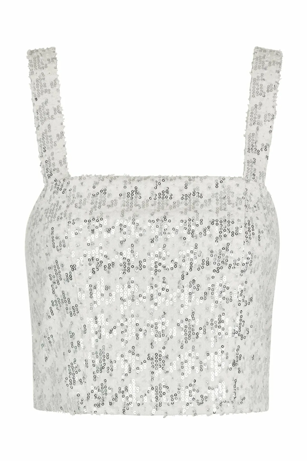 Cool Denimtop Med Skinnende Paillet-Print Og Lynlås Bagpå. Fremstillet Af 90% Bomuld Og 10% Polyester.