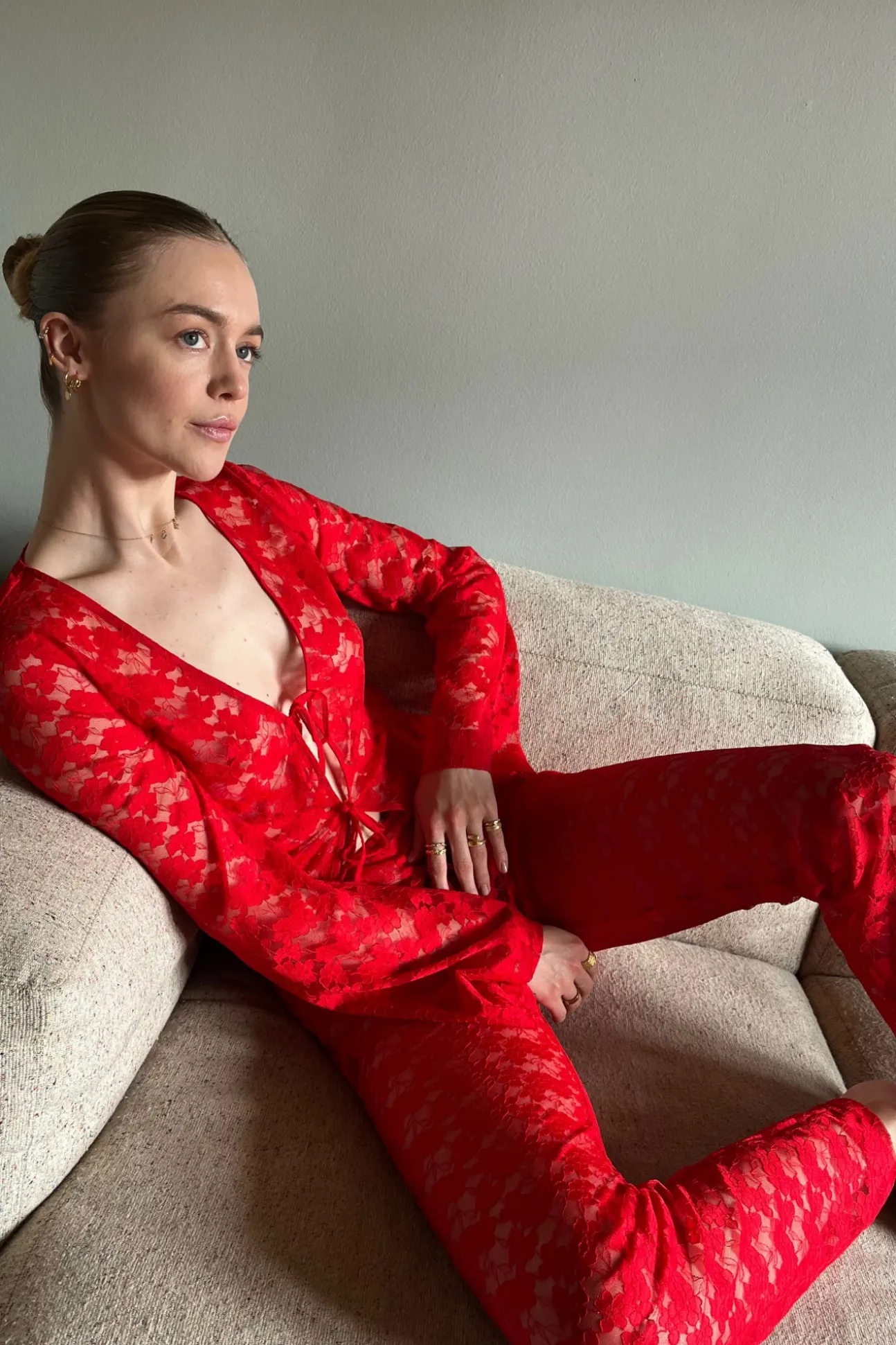 Slim Fit, Blondebluse Med To Bindebånd Foran For En Justerbar Pasform. Fremstillet Af 92% Nylon Og 5% Elastan. Match Med Thalia Bukser.