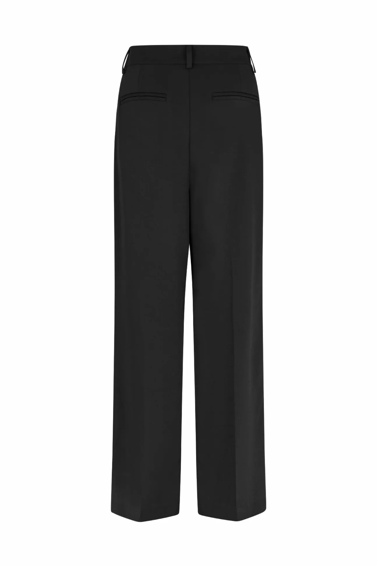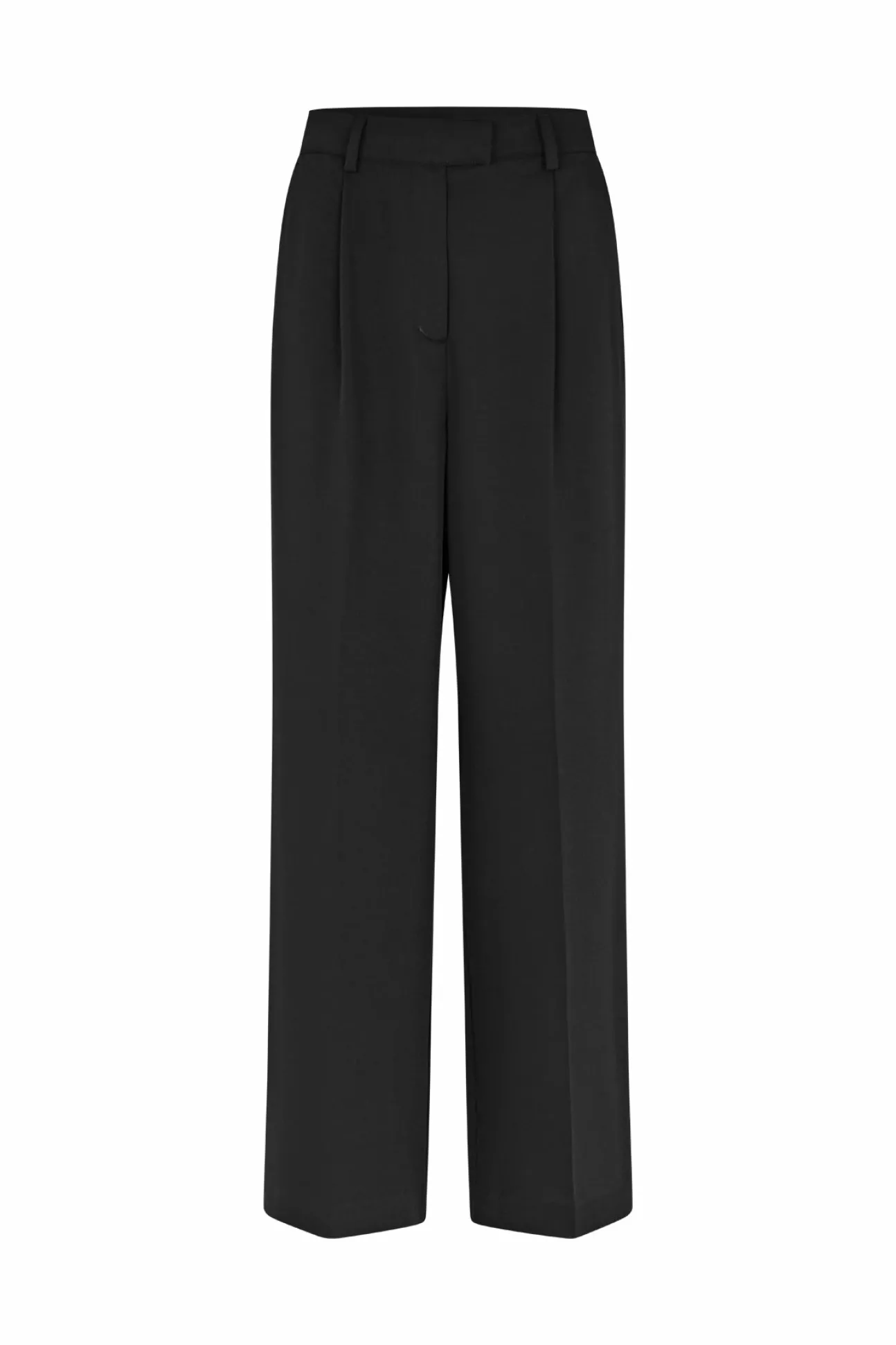 Brede Jakkesætsbukser Med Pressefolder, Bæltestropper Og Paspolerede Baglommer. Fremstillet Af 97% Genanvendt Polyester Og 3% Elastan.
