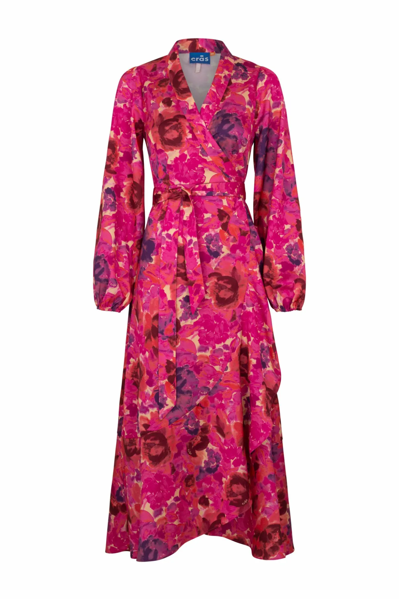 Flot, Lang Slå-Om-Kjole I Cool Print Med Flæsedetaljer Forneden. Fremstillet Af 100% Genanvendt Polyester Fra Plastaffald.