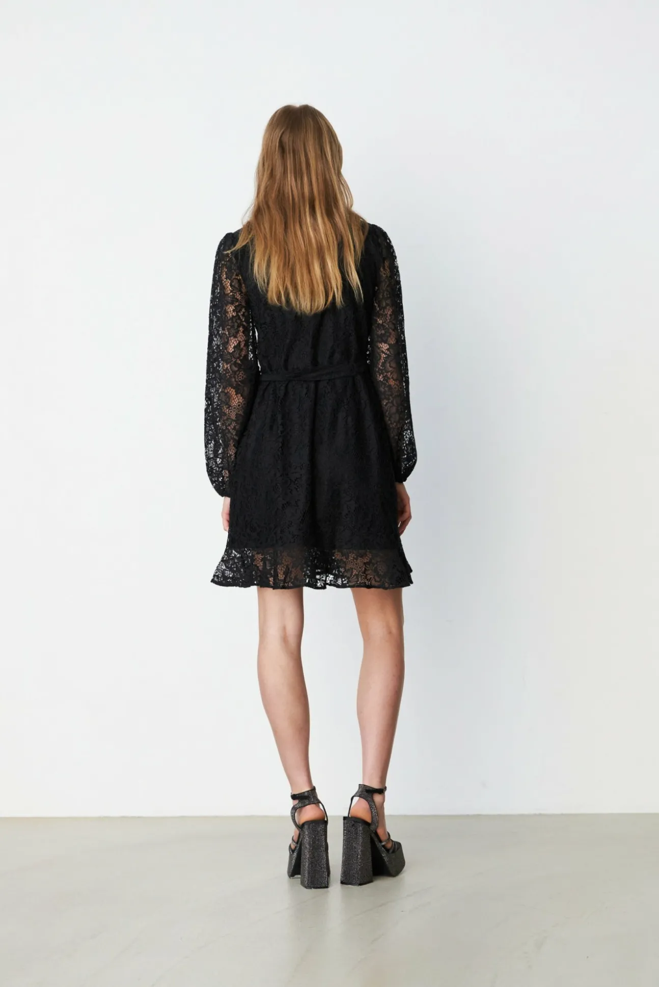 Smuk Slå-Om-Kjole I Flot Blondestof Med V-Udskæring, Voluminøse Ærmer Og Elastisk Ærmeåbning. Fremstillet Af 40% G…