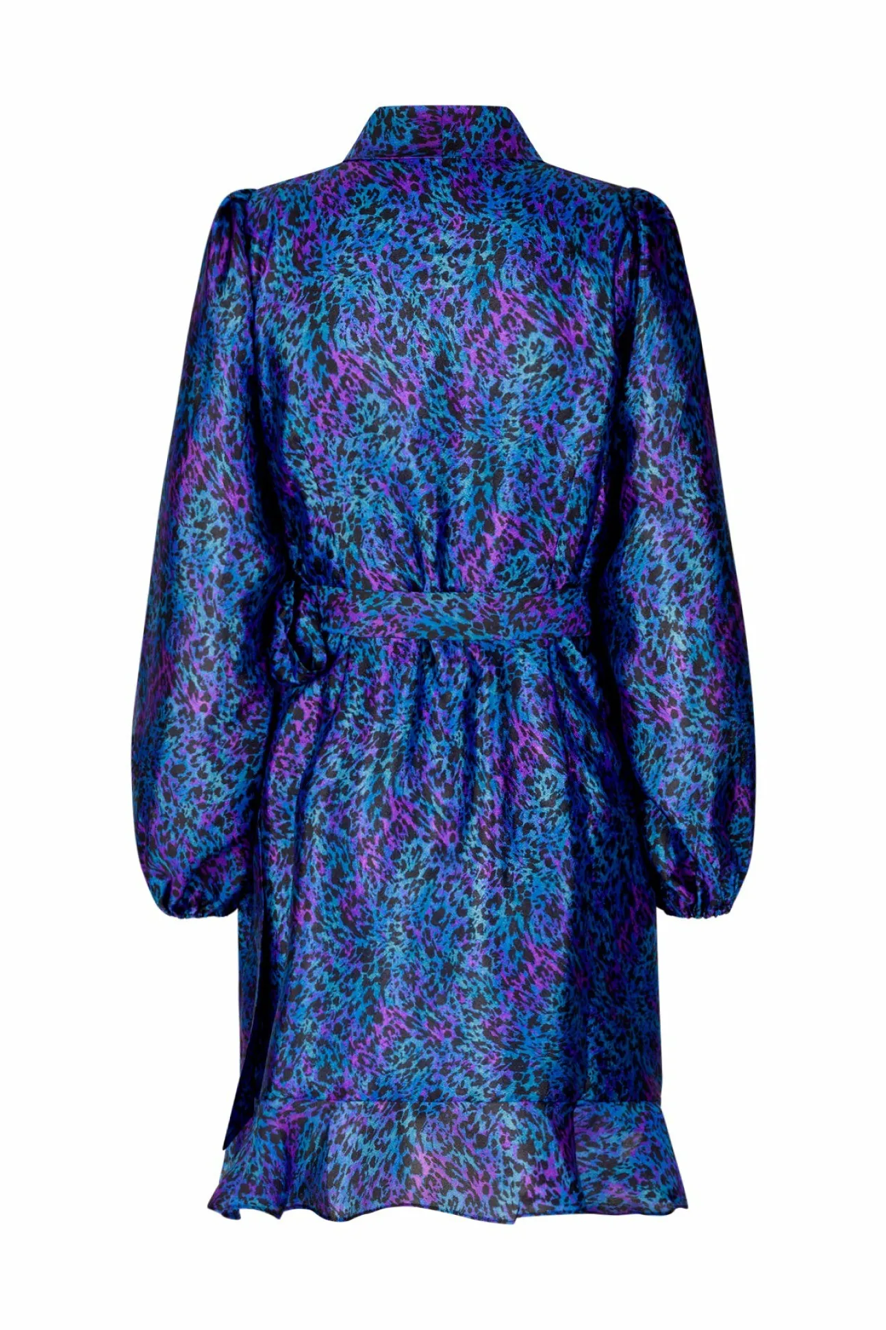Smuk Slå-Om-Kjole Med V-Udskæring I Cool Print, Voluminøse Ærmer Og Elastisk Ærmeåbning. Fremstillet Af 70% Genanvendt Polyester Og 30% Polyester.