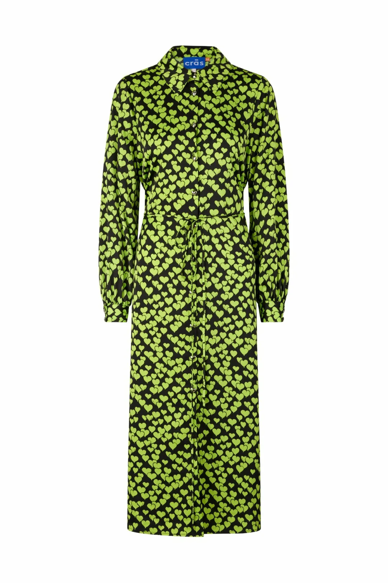 Lang Skjortekjole Med Seje Hjerteknapper I Åbningen På Fronten Og Aftageligt Bælte I Taljen. Kjolen Er Lavet Af 100% Genanvendt Polyester.