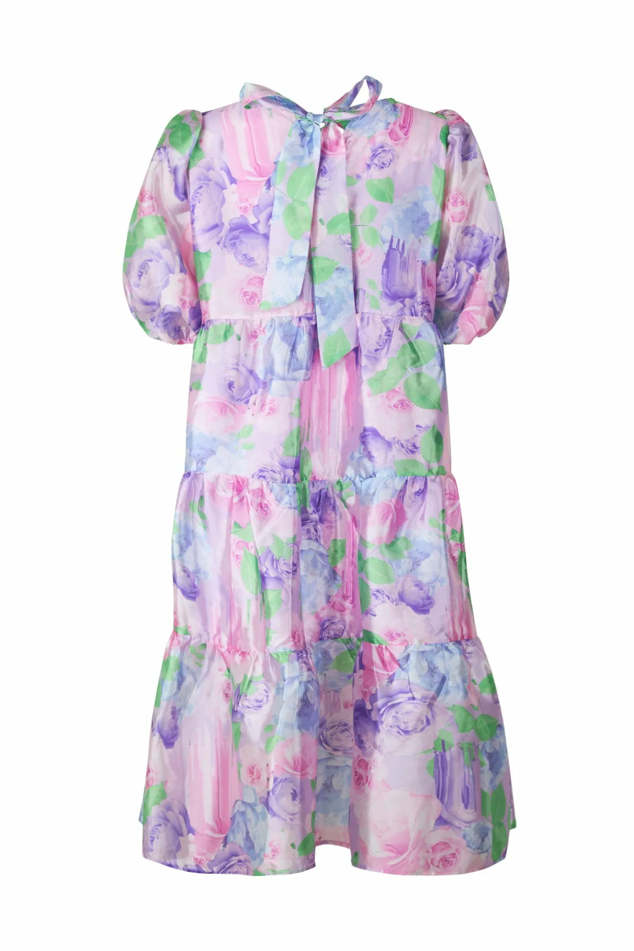 Cool Kjole Med Korte Pufærmer Og Bindebånd I Nakken. Kjolen Har En Løs Pasform Og Masser Af Vidde. Fremstillet Af 70% Genanvendt Polyester Fra Plastaffald Og 30% Polyester.