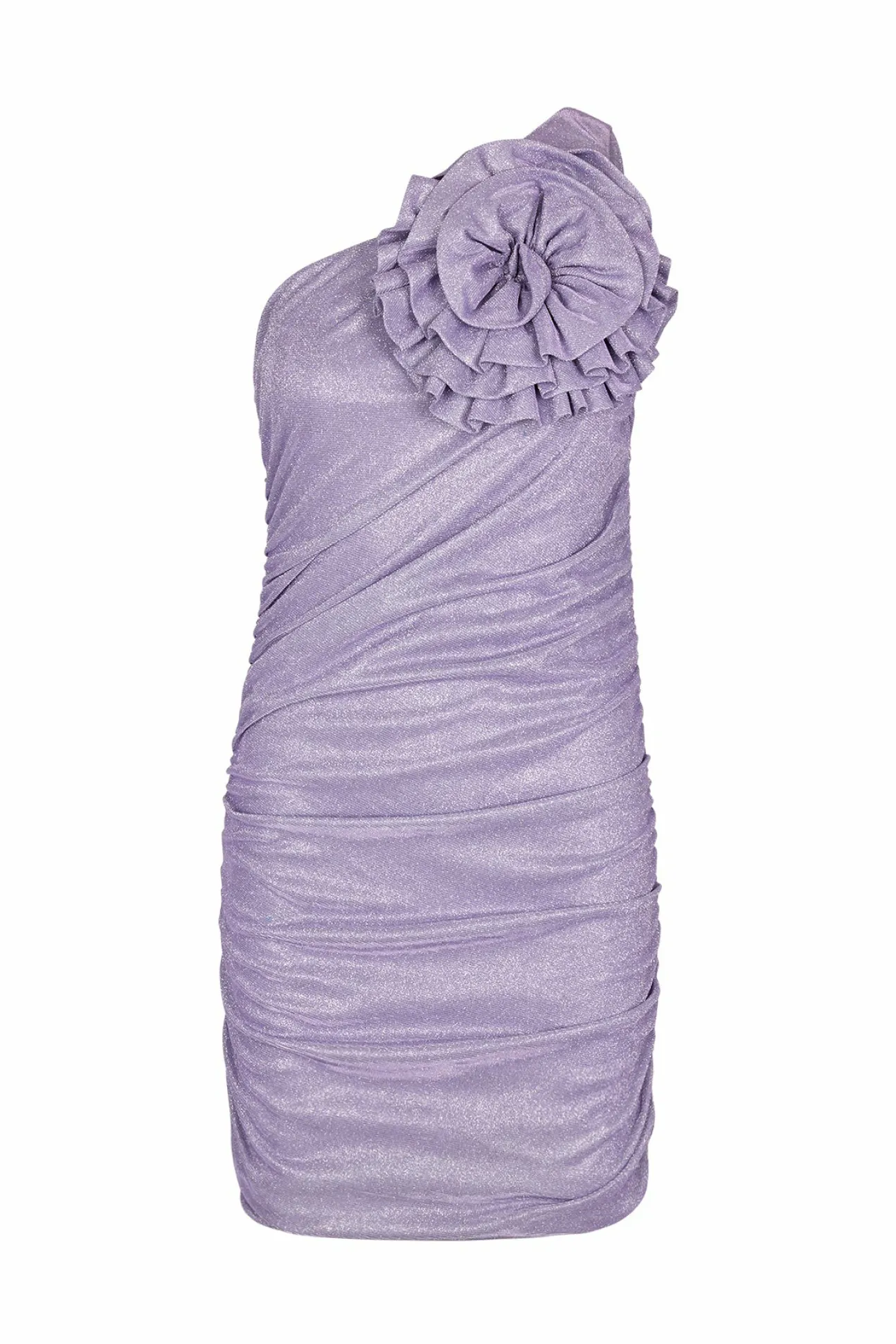 Blød, One-Shoulder Jersey Kjole Med Oversized Blomst. Fremstillet Af 52% Genanvendt Polyester Og 48% Metallisk Polyester.