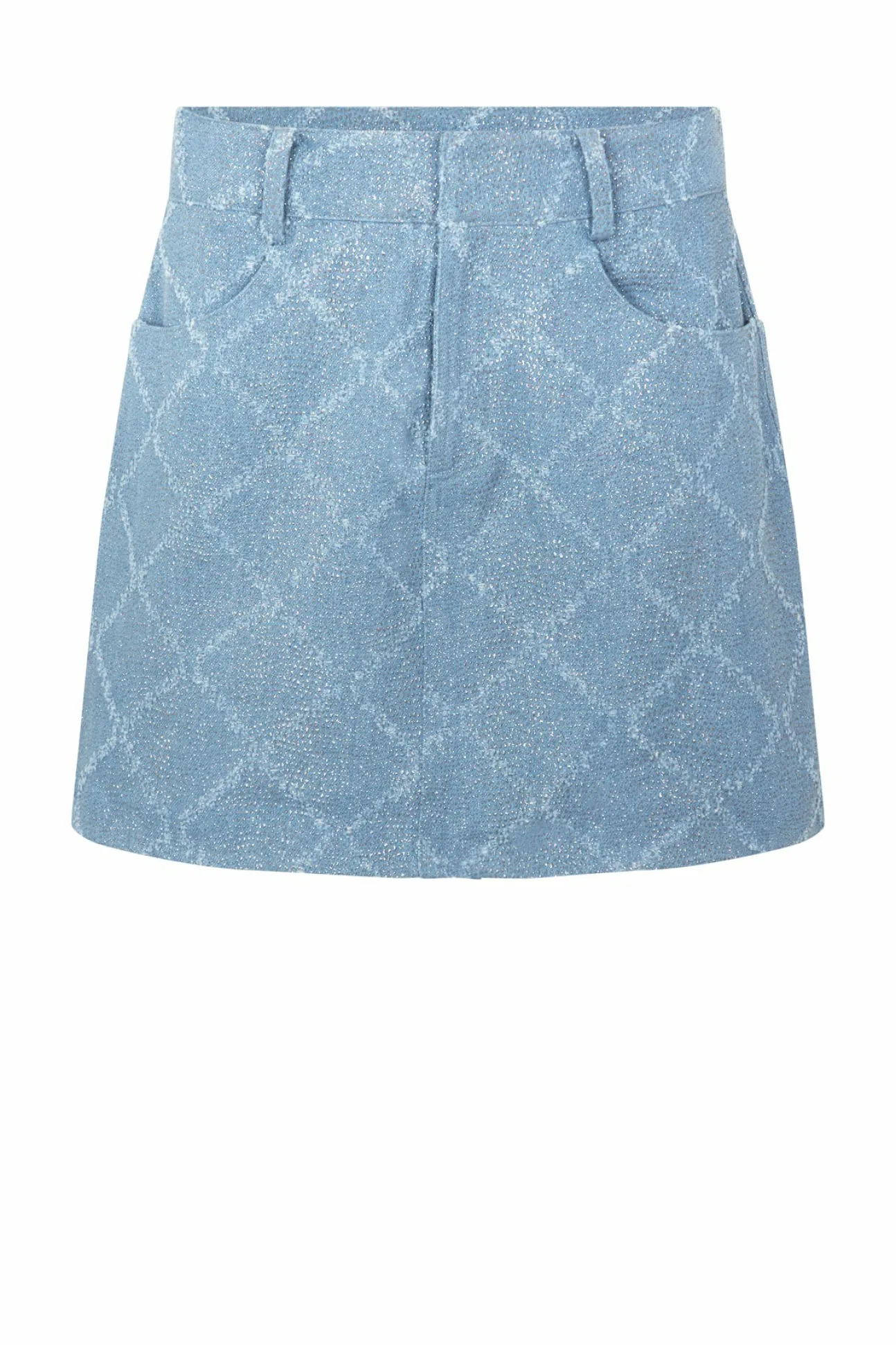 Glittrende Denimnederdel Med Sidelommer. Fremstillet Af 95% Økologisk Bomuld Og 5% Viskose.Farve: Sparkle Denim