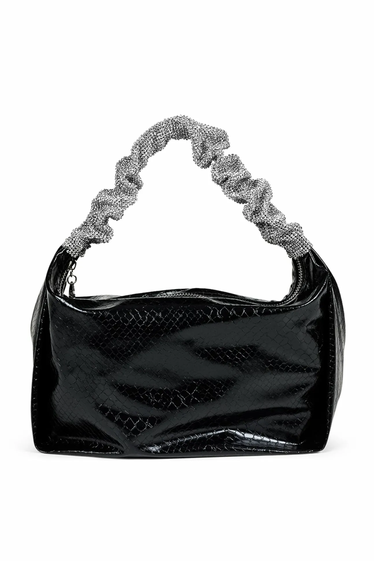 Cool Taske I Læderlook Med Rhinstensdekoreret Rem Og Lynlåslukning. Fremstillet Af 100% Polyurethan.Farve: Black