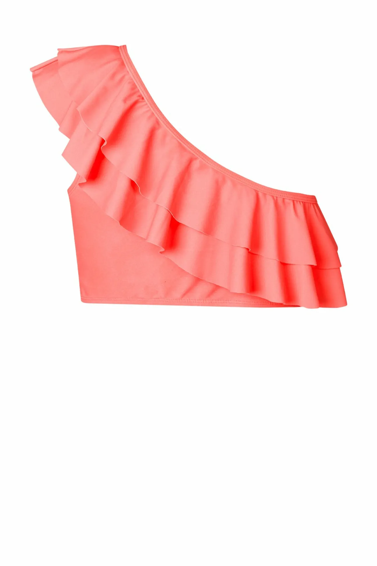 Fashionable One-Shoulder Bikinitop Med Cute Flæsedetaljer. Match Med Agnes Bikini Bottom. Fremstillet Af 82% Genanvendt…