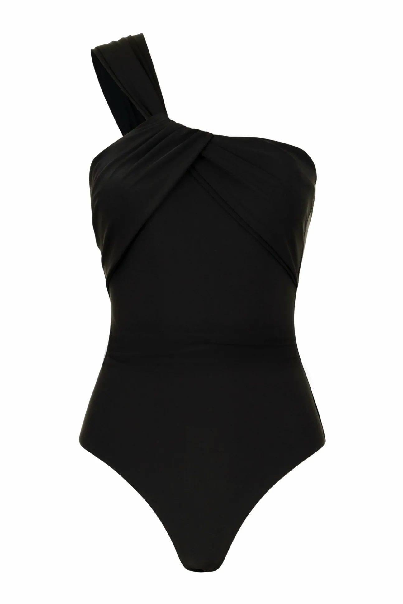 Moderne Stil Møder Tidløs Raffinement I Denne Baderagt, Der Er Udsmykket Med Én Enkelt Strop. Fremstillet Af 82% Genanvendt Polyamid Og 18% Elastan.