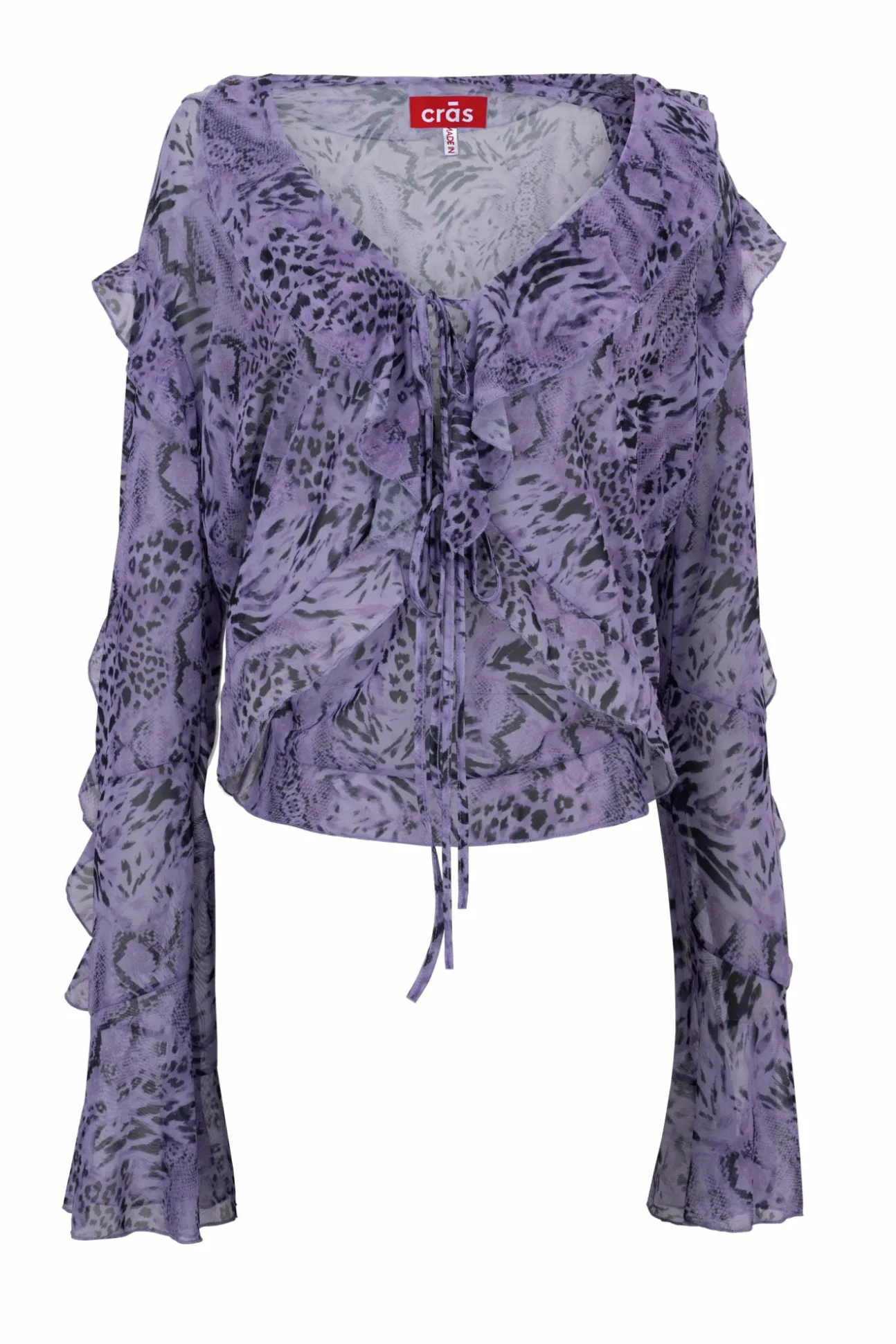 Super Sød Bluse Med Masser Af Flæsedetaljer Og Bindebånd Foran For En Justerbar Pasform. Fremstillet Af 94% Genanvendt Polyester Og 6% Elastan.