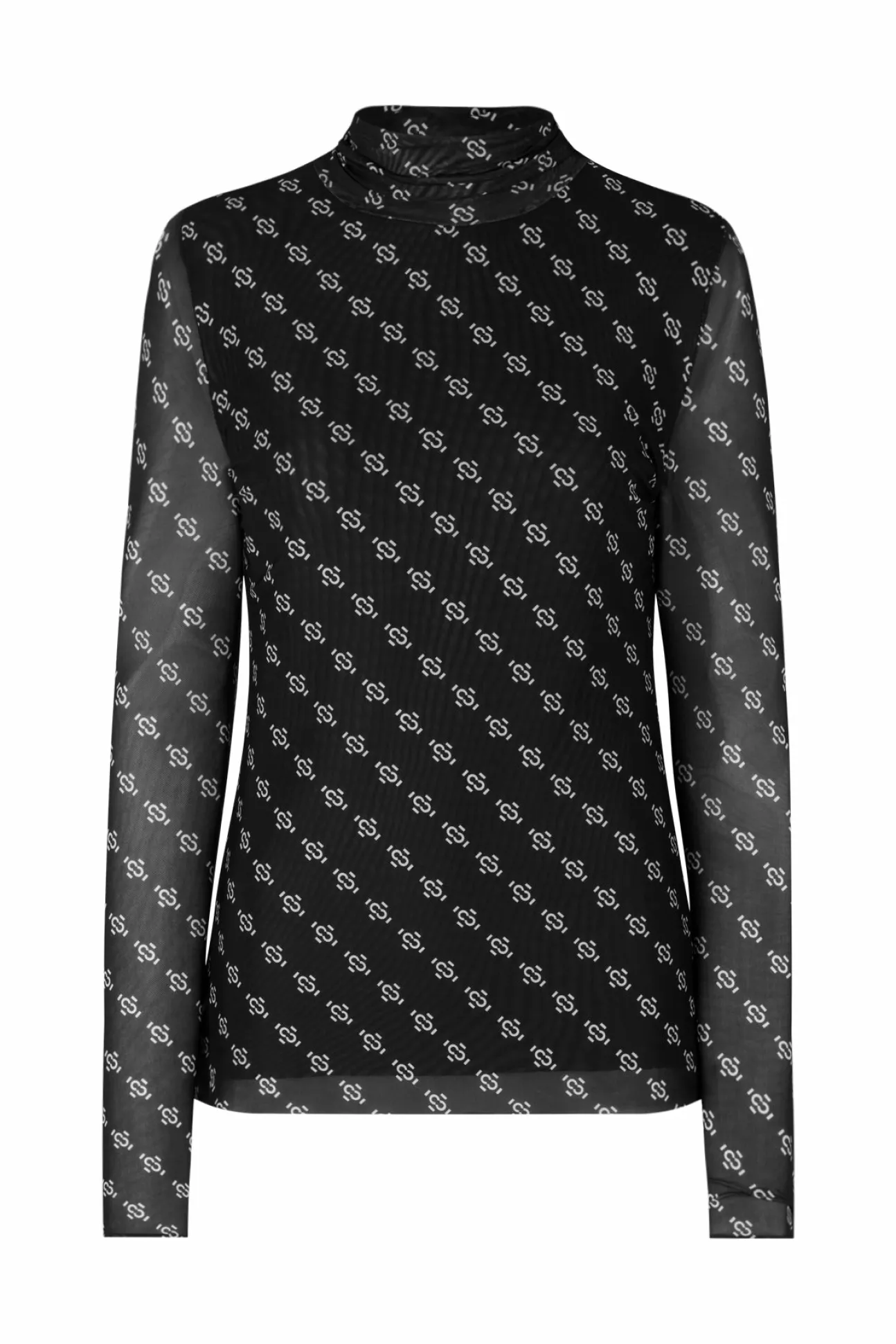 Tætsiddende Bluse I Seje Prints Med Høj Rullekrave. Lavet Af 92% Genanvendt Polyester Fra Plastikaffald Og 8% Elastan.