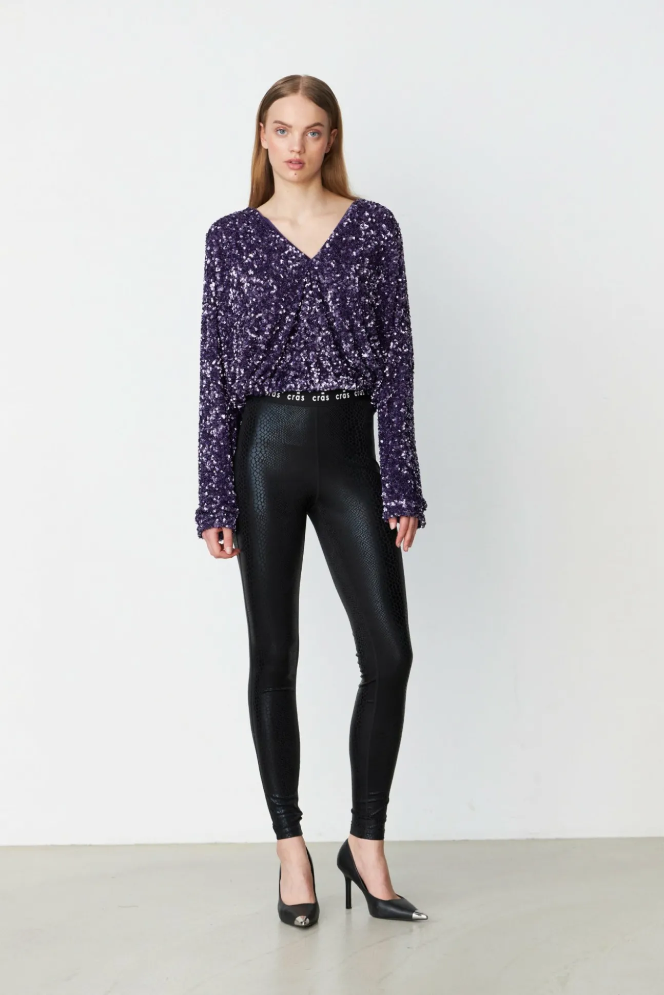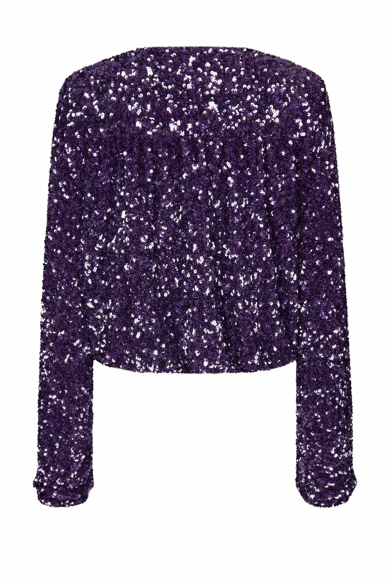 Glimtende Langærmet Top Med V-Udskæring, Slå-Om Effekt, Elastik I Ærmeåbningerne Og Taljen. Blusen Draperer Smukt P…