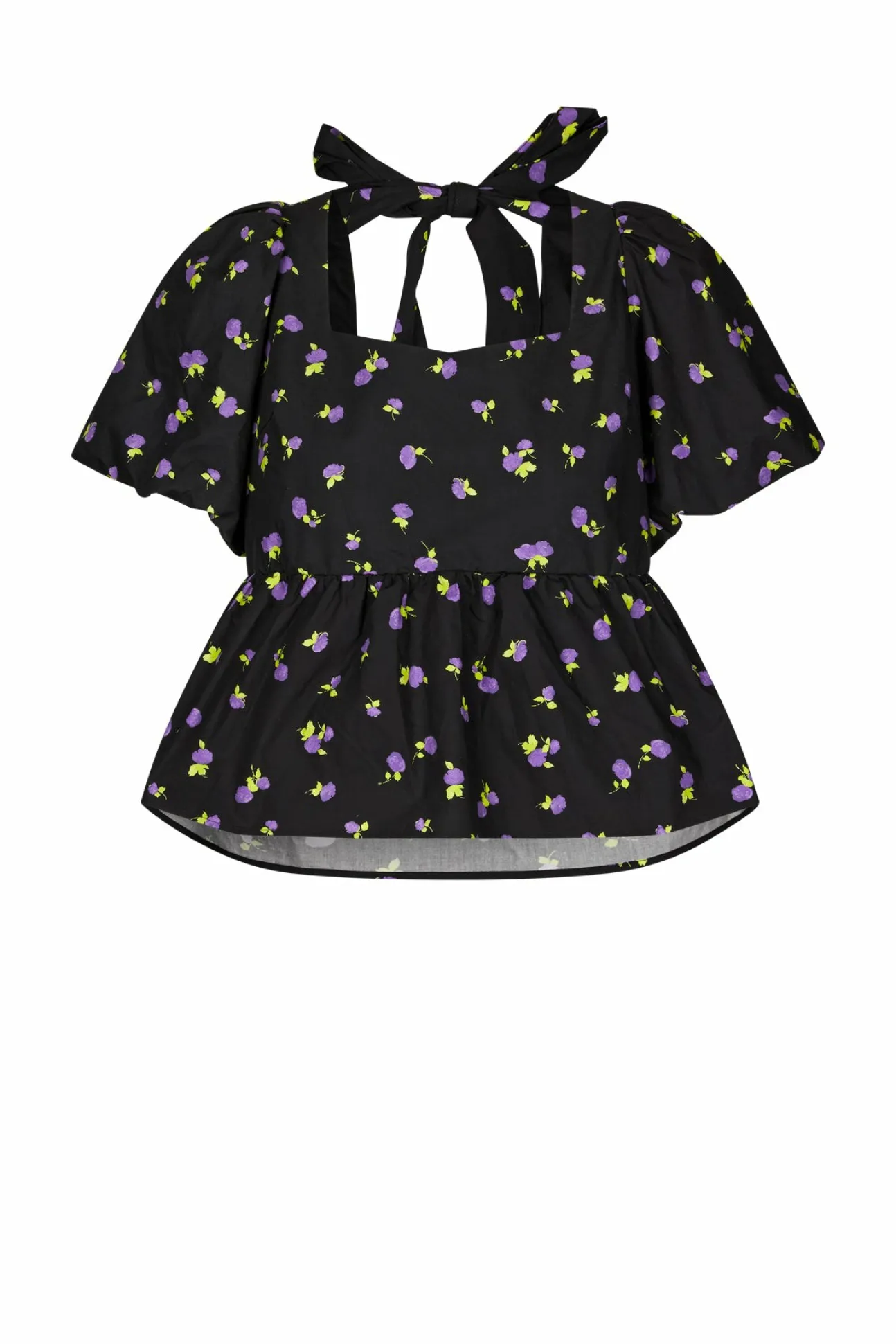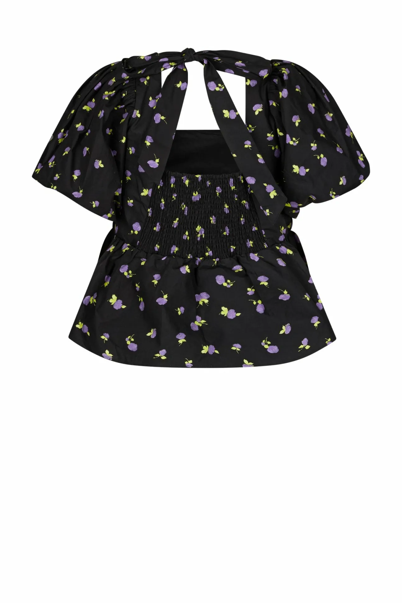 Bluse Med Firkantet Hals I Crisp Materiale Med Pufærmer, Elastisk Linning Og Vidde Forneden. Smockdetalje Og Bindelukning Bagpå. Fremstillet Af 100% Økologisk Bomuld.