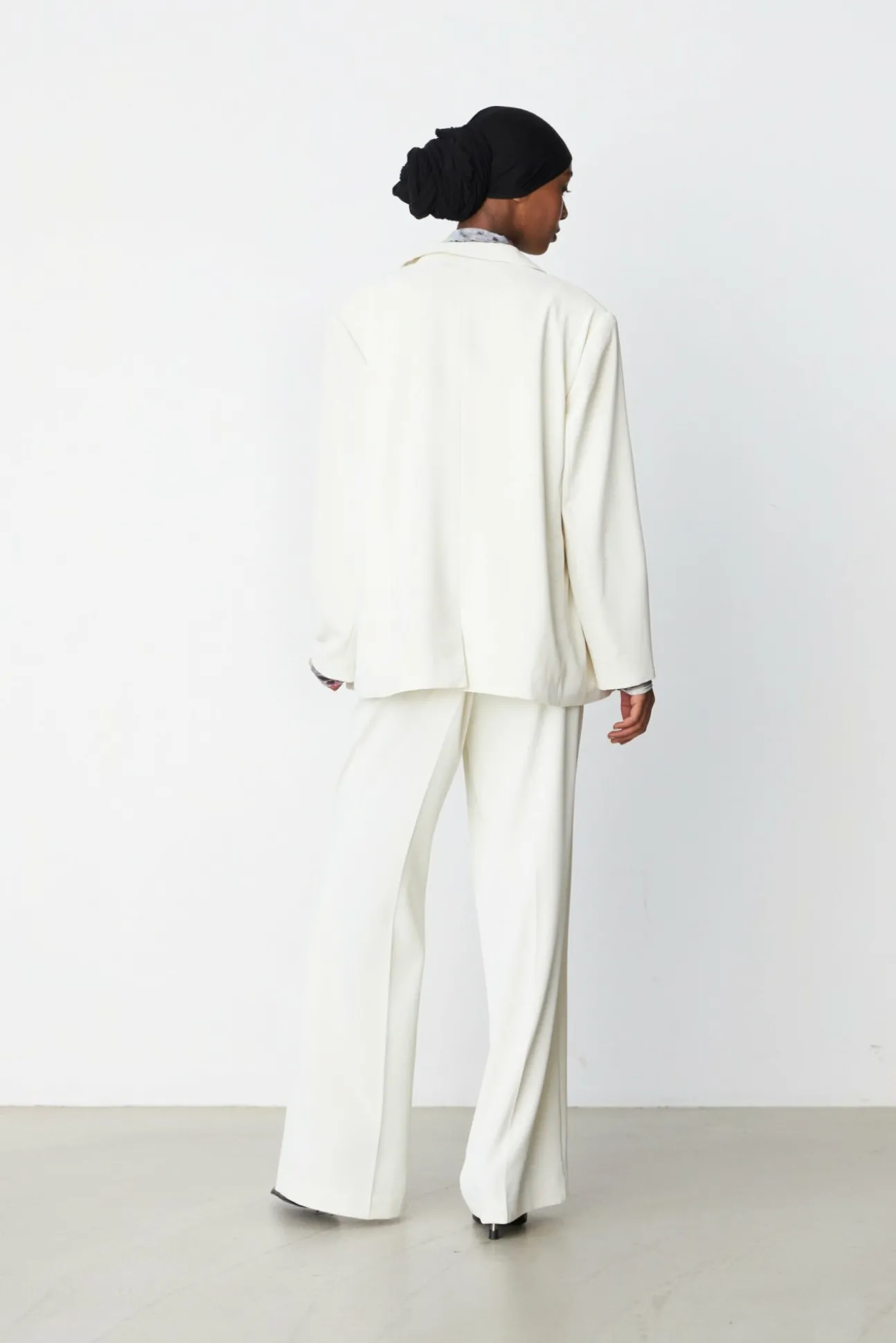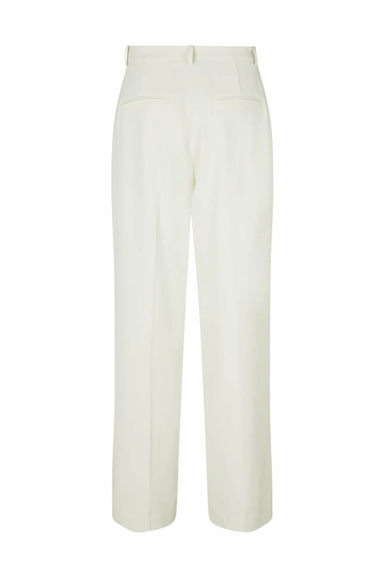 Brede Jakkesætsbukser Med Pressefolder, Bæltestropper Og Paspolerede Baglommer. Fremstillet Af 97% Genanvendt Polyester Og 3% Elastan.