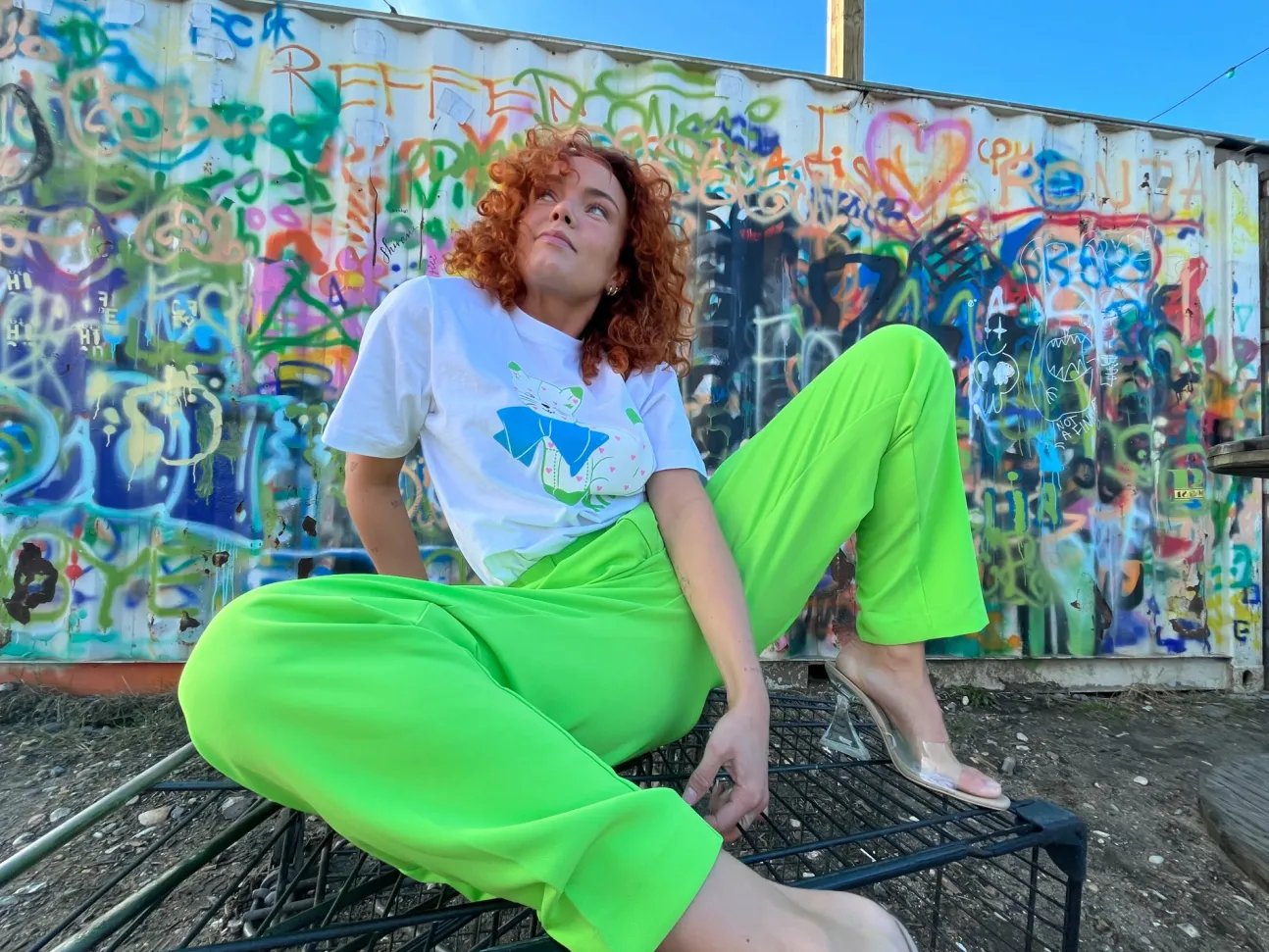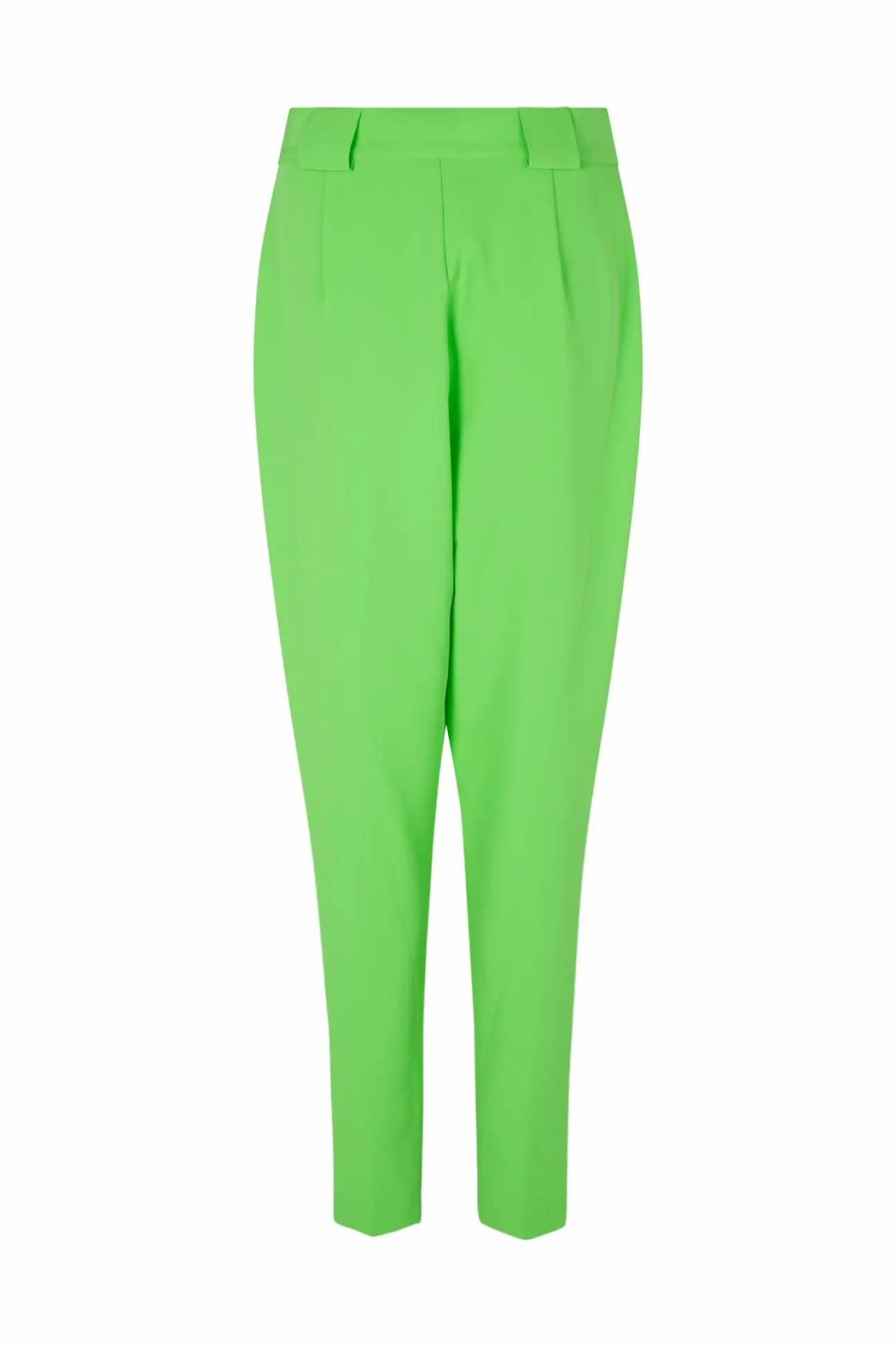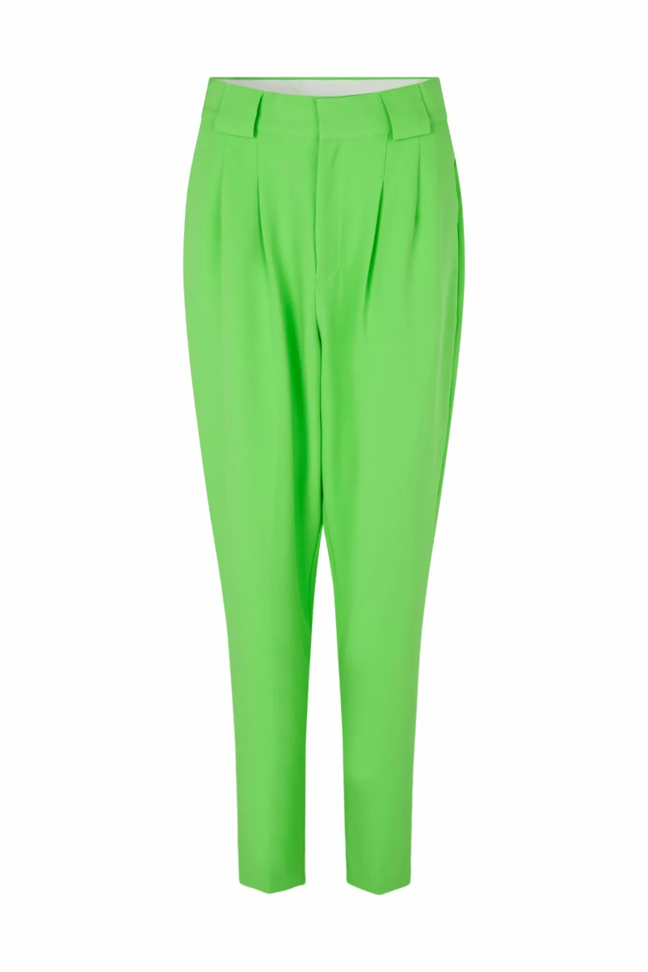 Højtaljede Bukser Med Læg Og Pressefolder. Bukserne Lukkes Med Lynlås Og Simili Knap. Lavet Af 90% Genanvendt Polyester Fra Plastikaffald Og 10% Elastan.