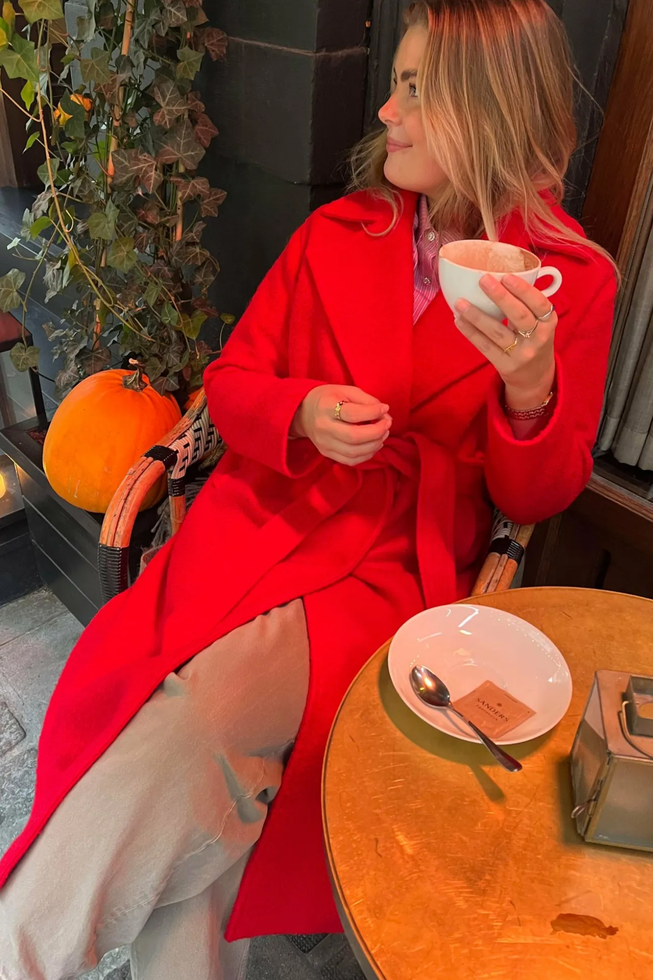 Smuk, Klassisk Frakke Med Overdimensioneret Revers Og Brede Ærmer. Har Aftageligt Bælte I Taljen. Fremstillet I 50% Uld Og 50% Polyester.