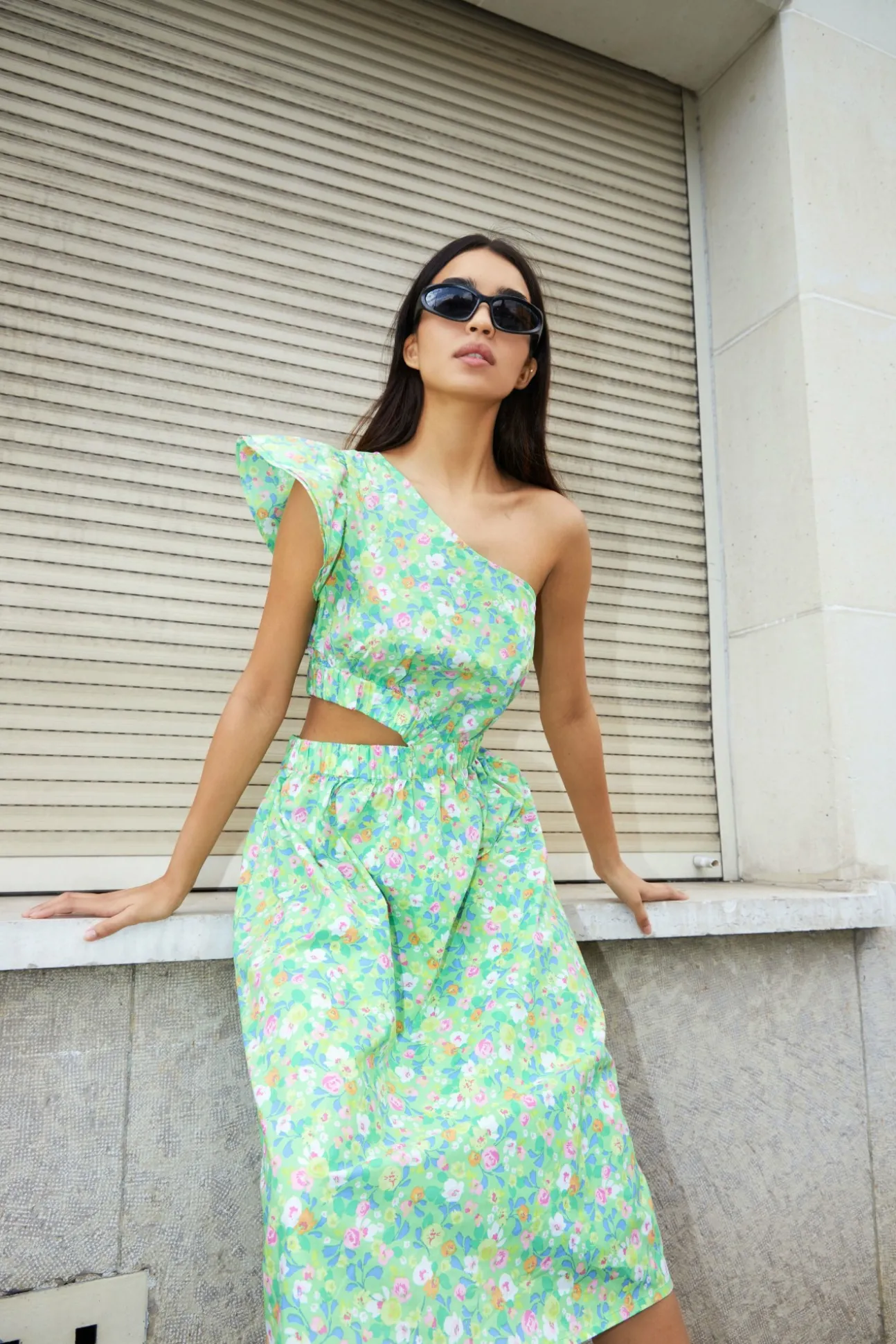 Lang, One Shoulder-Kjole Med Udskæring I Siden Og Elastik I Taljen. Perfekt Til De Varmere Dage. Fremstillet Af 100% Økologisk Bomuld.