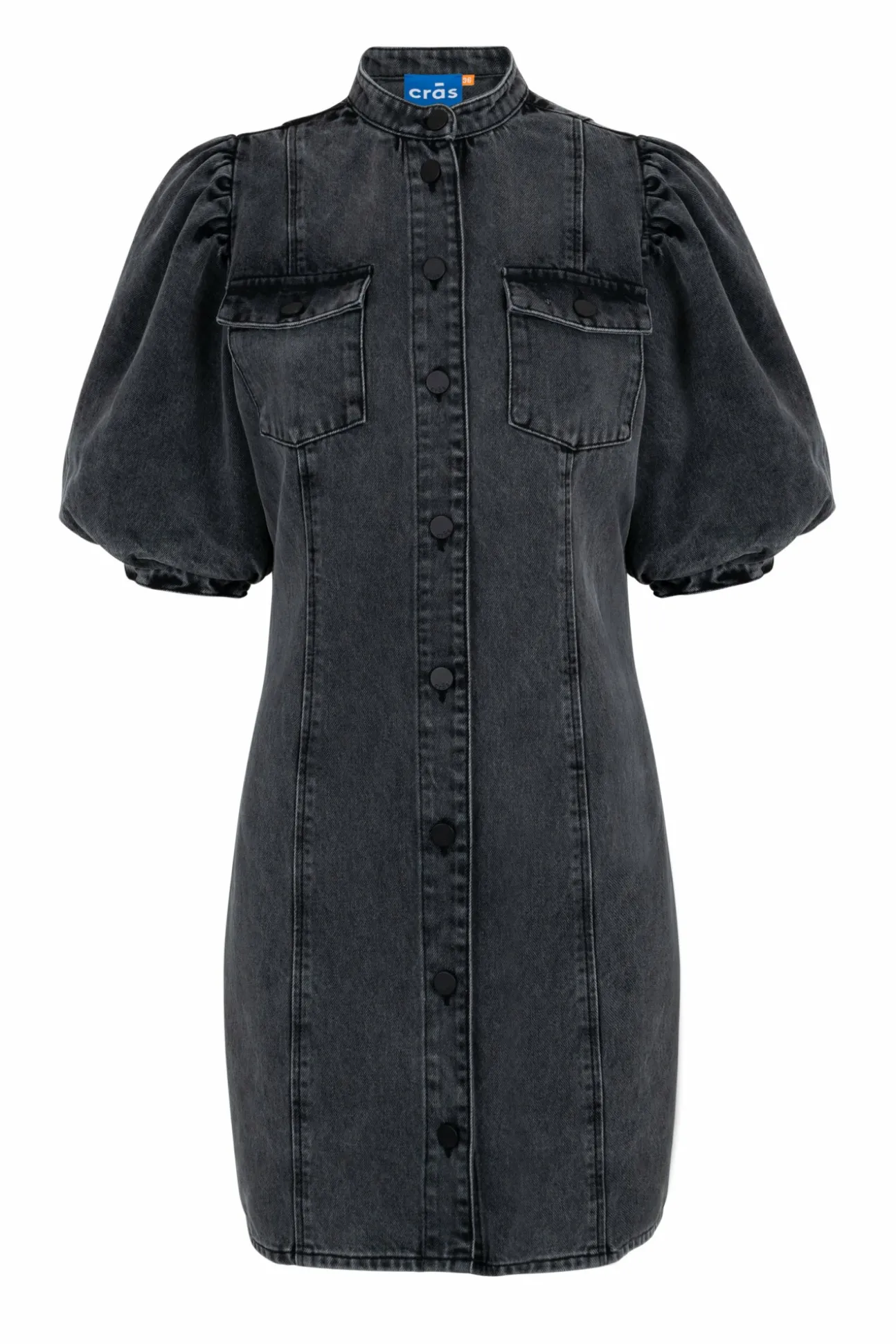 Cool Denim Skjortekjole Med Pufærmer, Brystlommer Og Knapper Ned Langs Fronten.Farve: Grey/Black