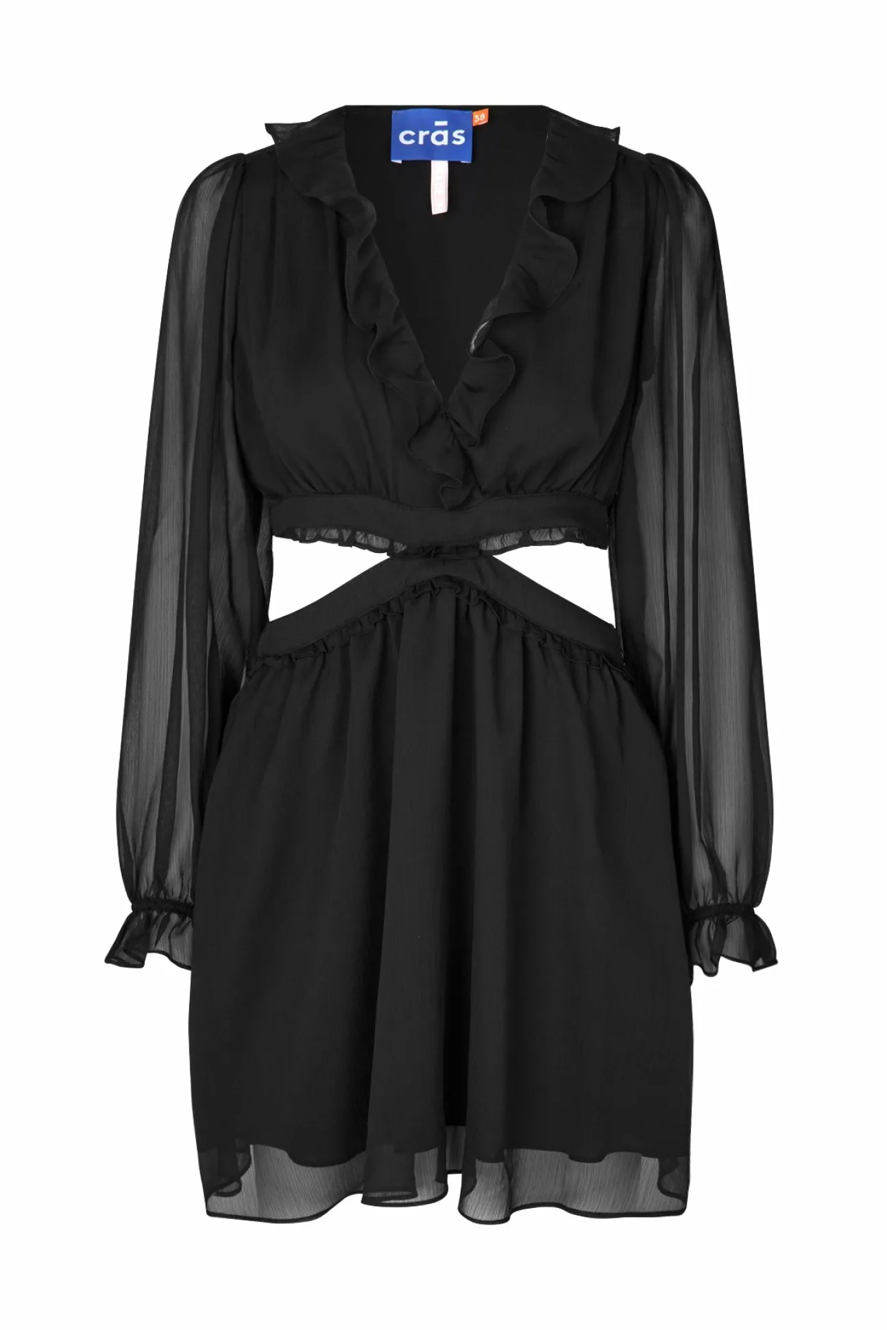 Sassy Kjole Med Lange Voluminøse Ærmer Og Åbne Sider Og Ryg. Kjolen Er Dekoreret Med Masser Af Flæsedetaljer Og Har En Plisseret Underdel Med Masser Af Fylde – Den Perfekte Festkjole Til Sommeren. Fremstillet Af 100% Genanvendt Polyester Fra Plastaffald.