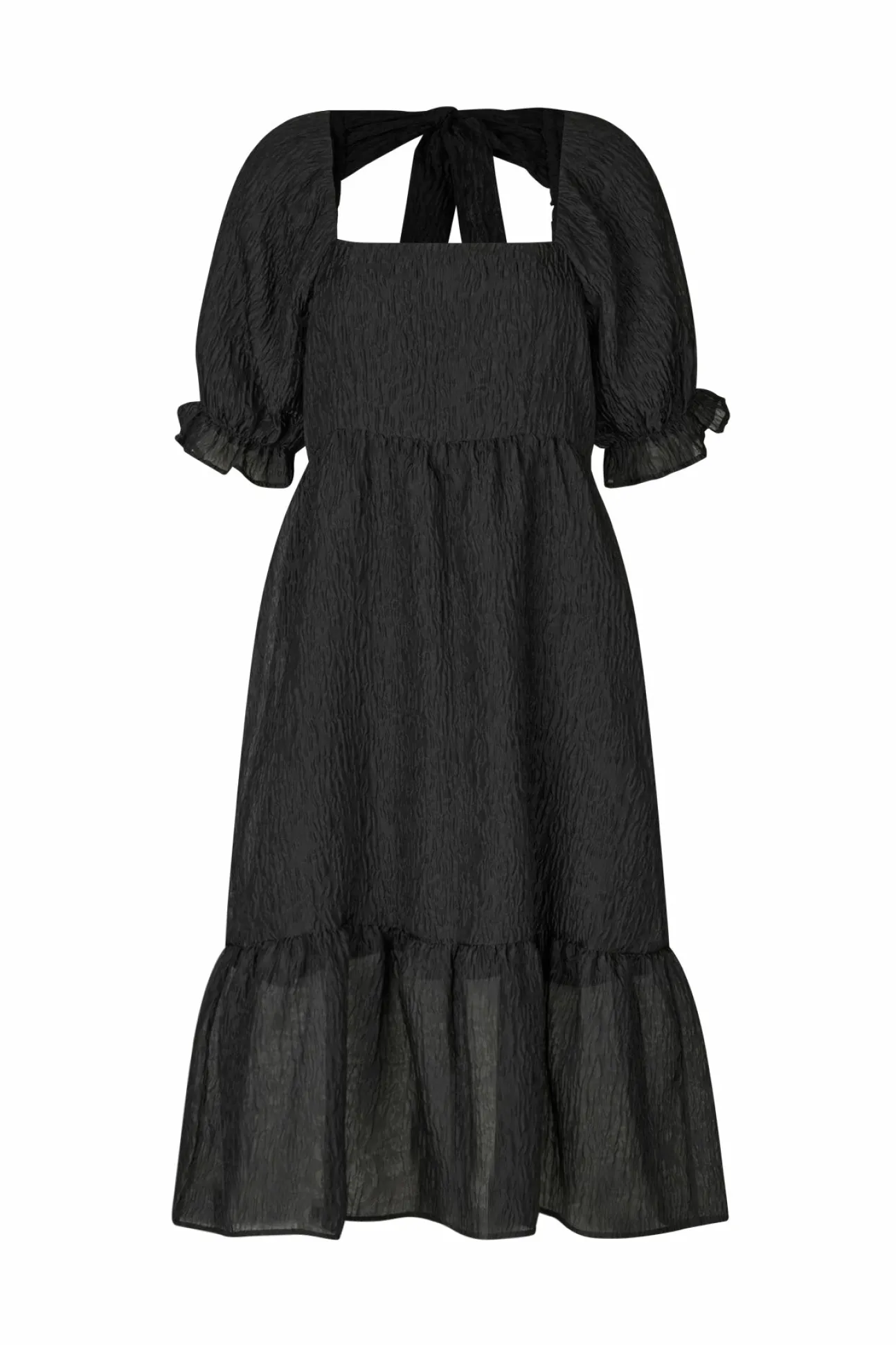 Perfekt Sommerkjole Med Masser Af Volumen. Kjolen Har En Løs Pasform, Firkantet Halsudskæring, Korte Ærmer Og Bindebånd I Nakken. Fremstillet Af 40% Polyamid, 30% Genanvendt Polyester Og 30% Polyester.
