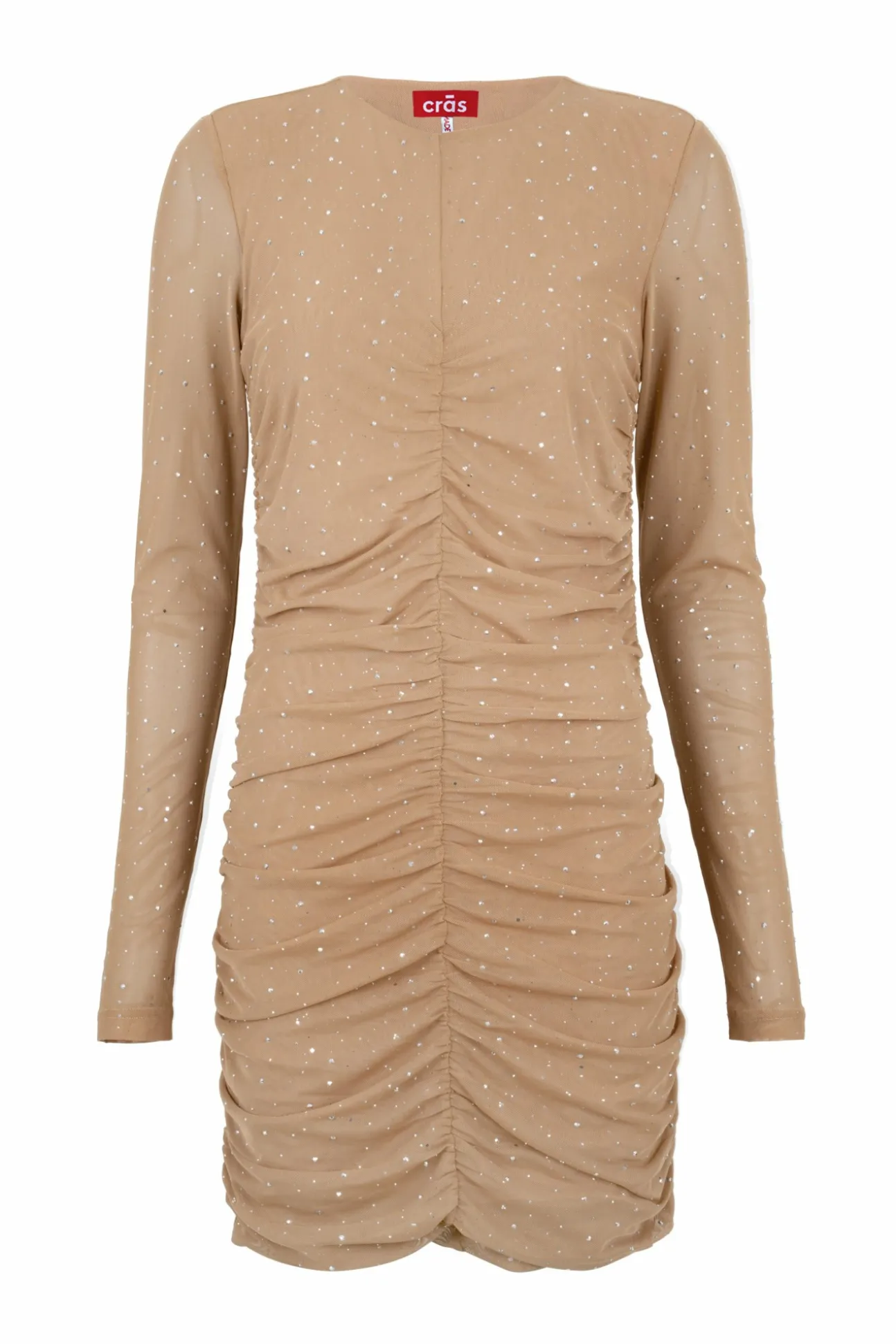 Denne Mesh-Kjole Med Rhinsten Er Den Perfekte Blanding Af Elegance Og Glitter. Kjolen Har Masser Af Rynk, Der Skaber Et Meget Flatterende Look. Fremstillet Af 93% Genanvendt Polyester Og 7% Elastan. Fremstillet Af 93% Genanvendt Polyester Og 7% Elastan.