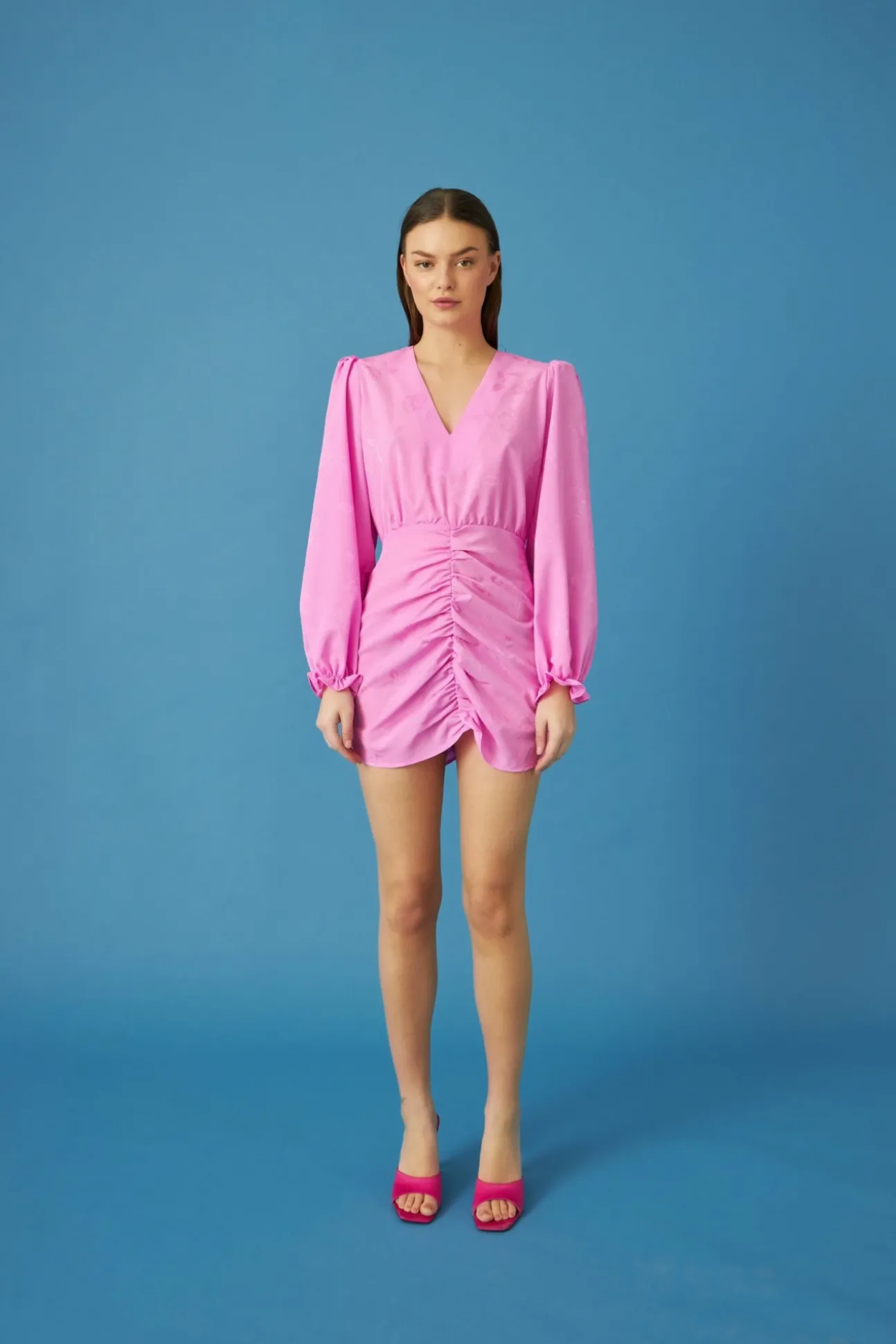 Cool Kjole Med V-Udskæring, Flæsedetaljer Og Elastik Ved Ærmeåbninger. Kjolen Draperer Smukt På Grund Af Masser Af Rynker Foran. Fremstillet Af 100% Genanvendt Polyester Fra Plastaffald.