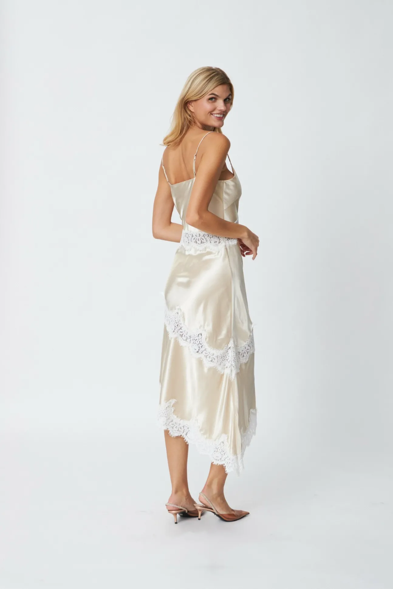 Chic Slim Fit Kjole Med Spagettistropper Og Pyntet Med Fine Blondedetaljer, Der Udstråler Tidløs Elegance Og Femininit…