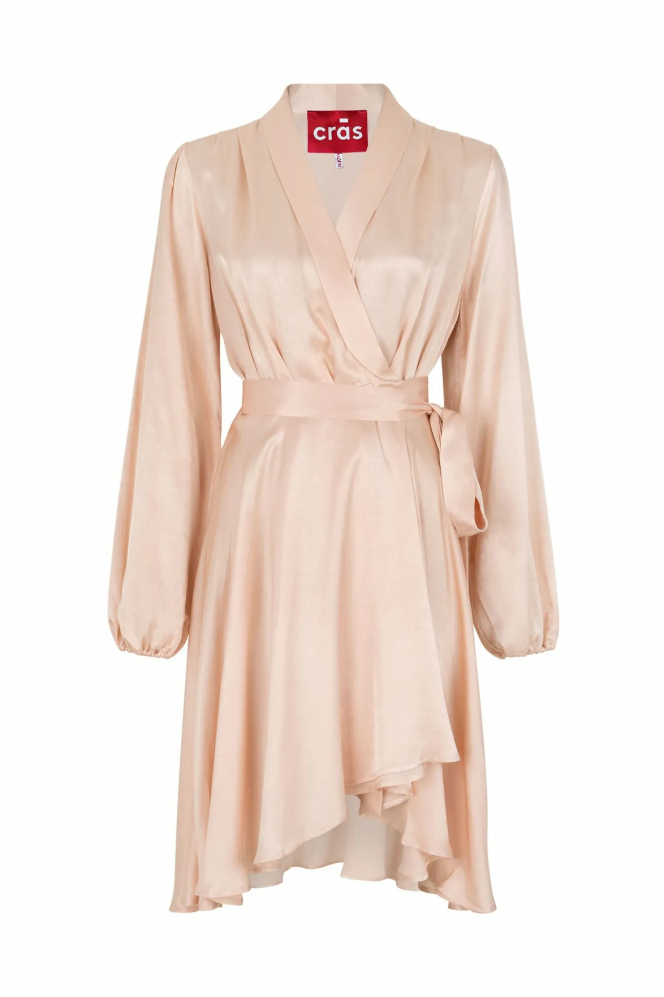 Elegant Wrapkjole Der Stråler Af Elegance, Fremstillet I Et Luksuriøs Skinnende Materiale. Prydet Med Lange, Yndefulde…