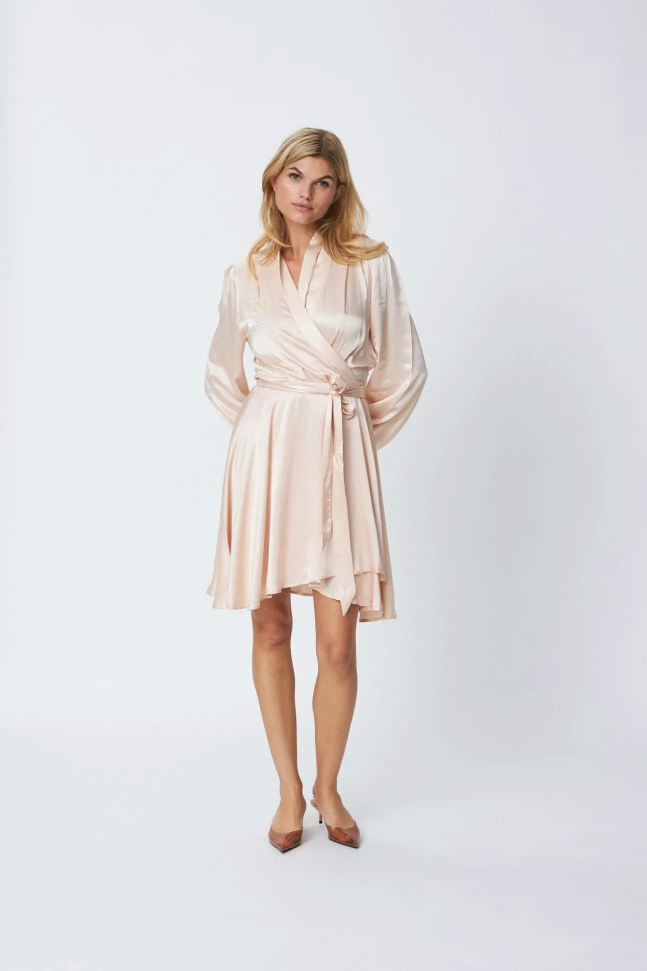 Elegant Wrapkjole Der Stråler Af Elegance, Fremstillet I Et Luksuriøs Skinnende Materiale. Prydet Med Lange, Yndefulde Klokkeærmer, Udstråler Denne Kjole Tidløs Charme Og Ynde. Lavet I 57% Ecovero Og 43% Viskose.