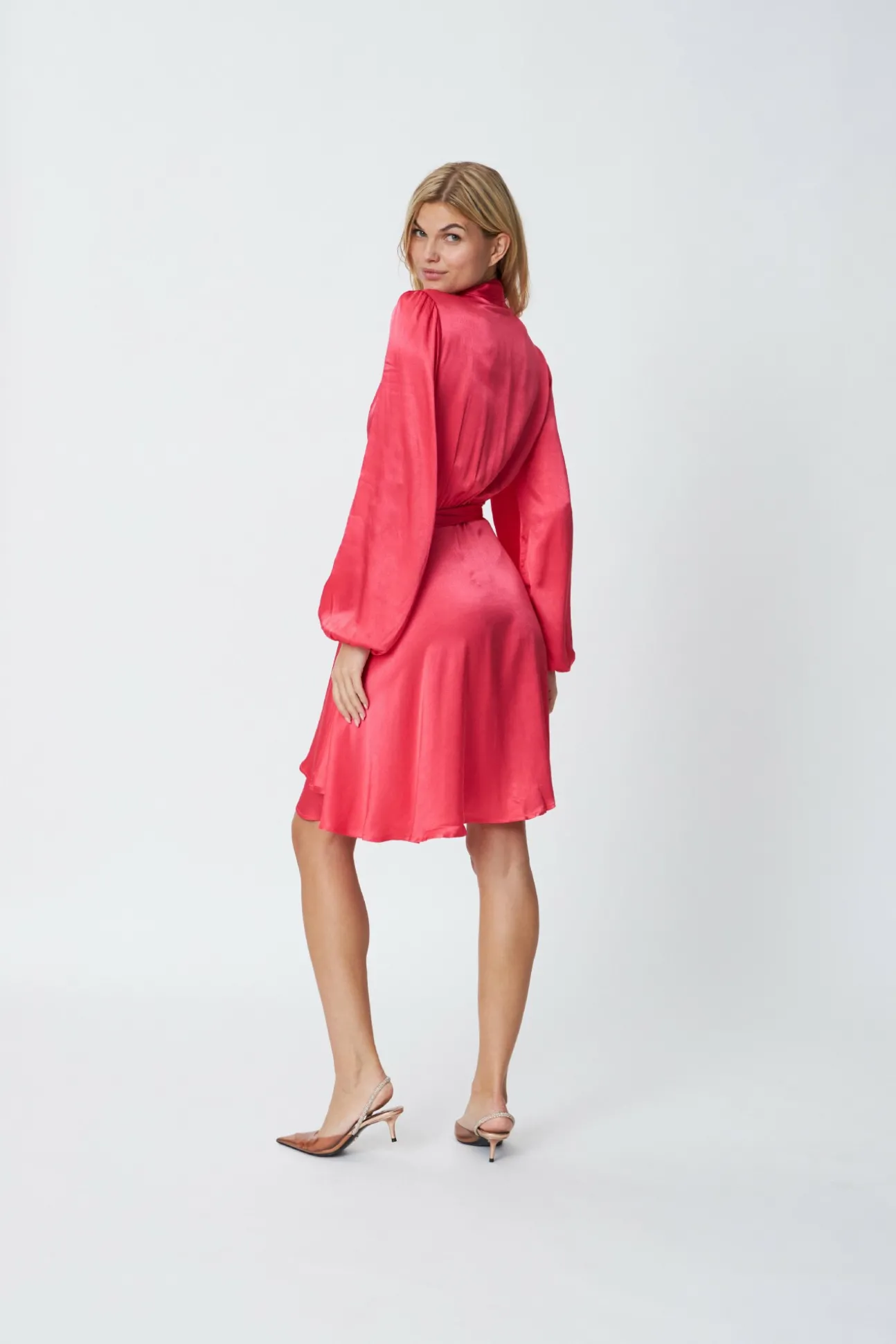 Elegant Wrapkjole Der Stråler Af Elegance, Fremstillet I Et Luksuriøs Skinnende Materiale. Prydet Med Lange, Yndefulde Klokkeærmer, Udstråler Denne Kjole Tidløs Charme Og Ynde. Lavet I 57% Ecovero Og 43% Viskose.