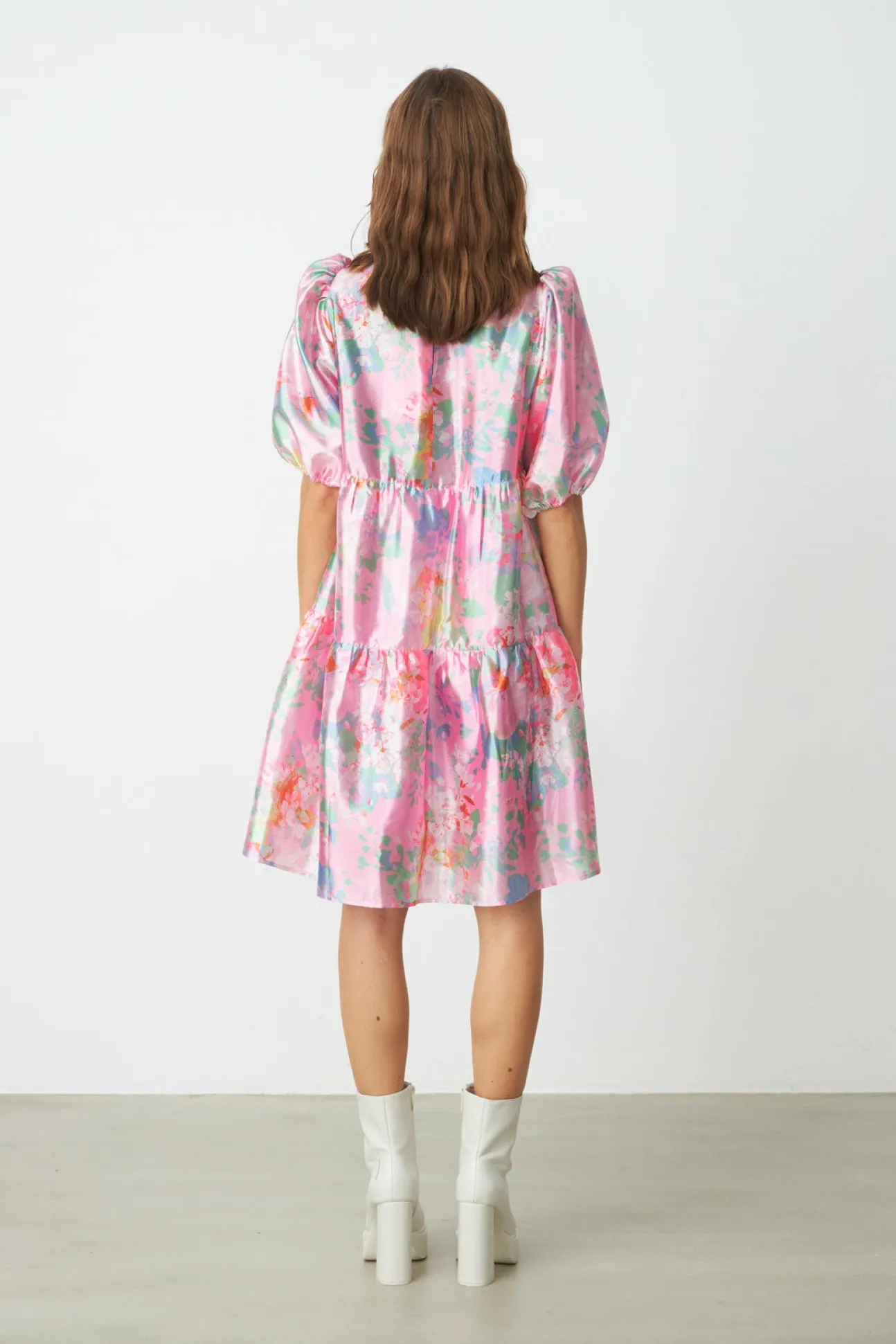 Cool Kjole Med Korte Pufærmer, Slå-Om-Effekt På Overdelen Og Masser Af Vidde Forneden. Fremstillet Af 70% Genanvendt Polyester Og 30% Polyester.