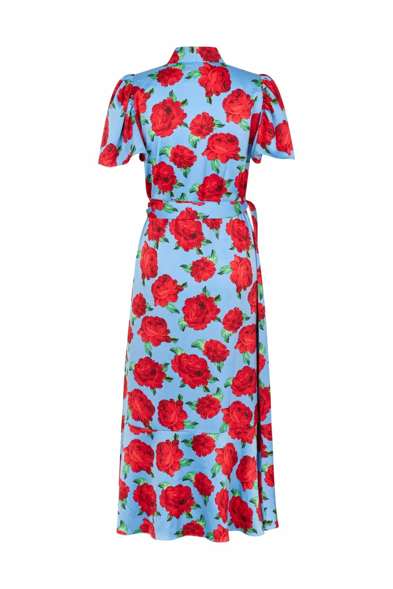 Lang, Wrap-Kjole Med Korte Ærmer, Bindebånd I Taljen Og Frynser Forneden. Lavet Af 100% Genanvendt Polyester.Farve: Bl…