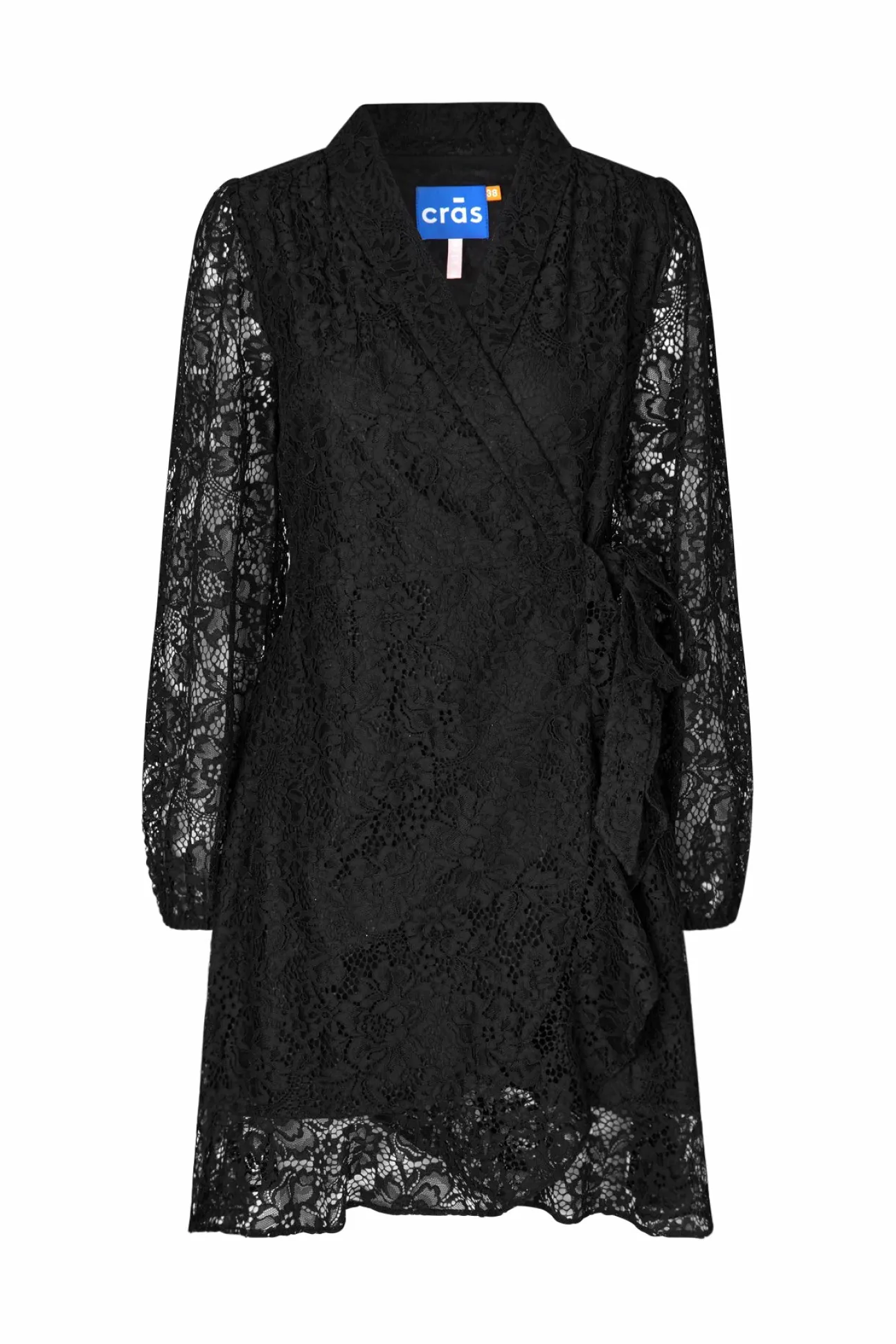 Smuk Slå-Om-Kjole I Flot Blondestof Med V-Udskæring, Voluminøse Ærmer Og Elastisk Ærmeåbning. Fremstillet Af 40% G…