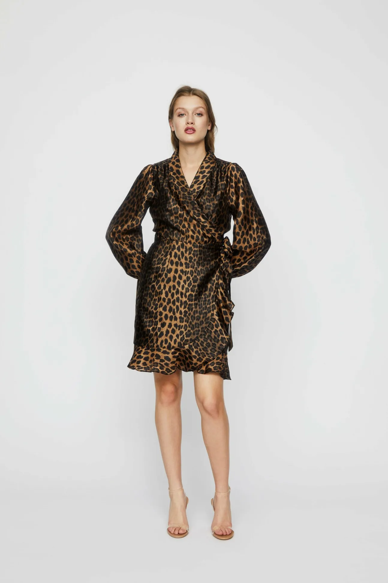 Smuk Slå-Om-Kjole Med V-Udskæring I Cool Print, Voluminøse Ærmer Og Elastisk Ærmeåbning. Fremstillet Af 70% Genanvendt Polyester Og 30% Polyester.
