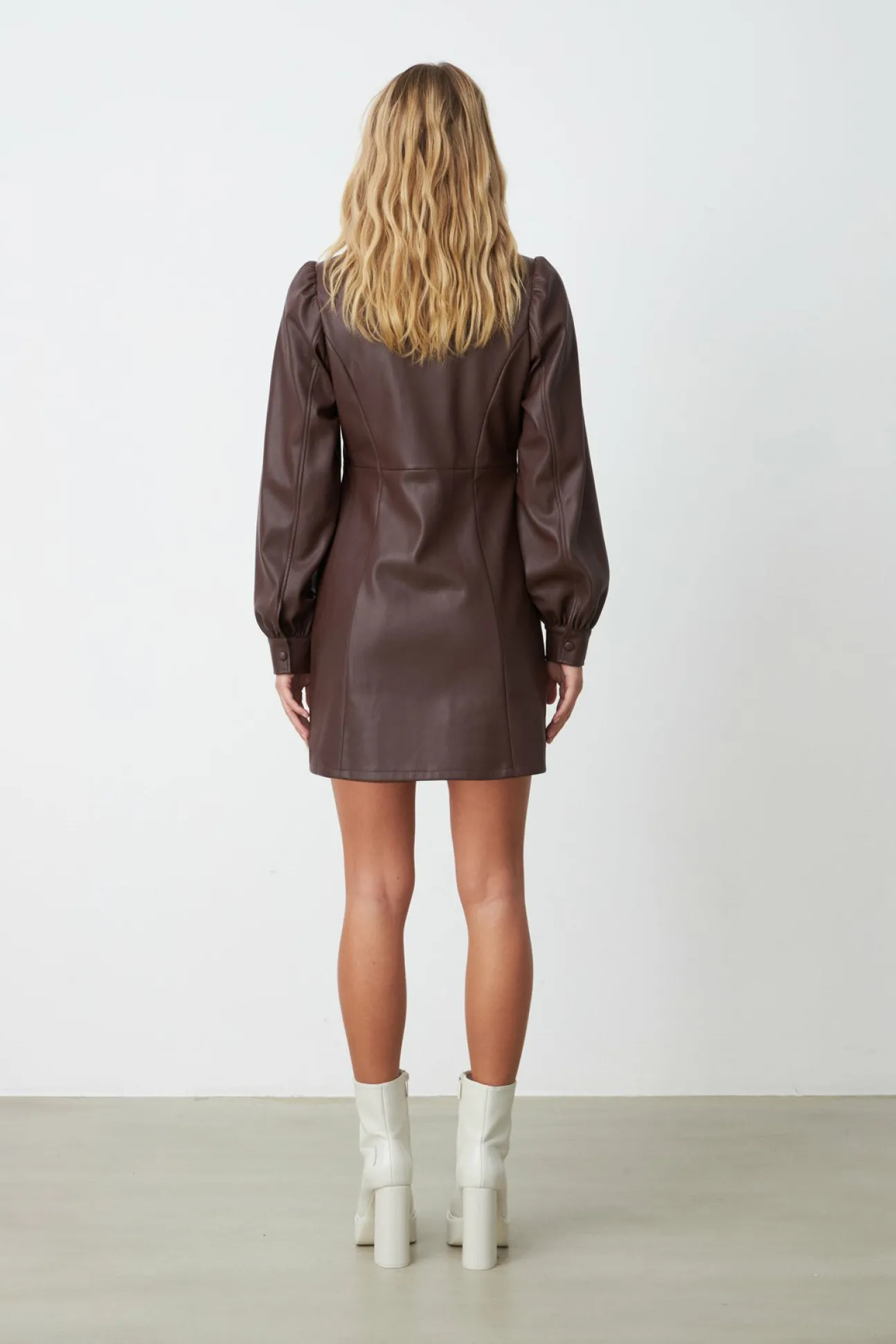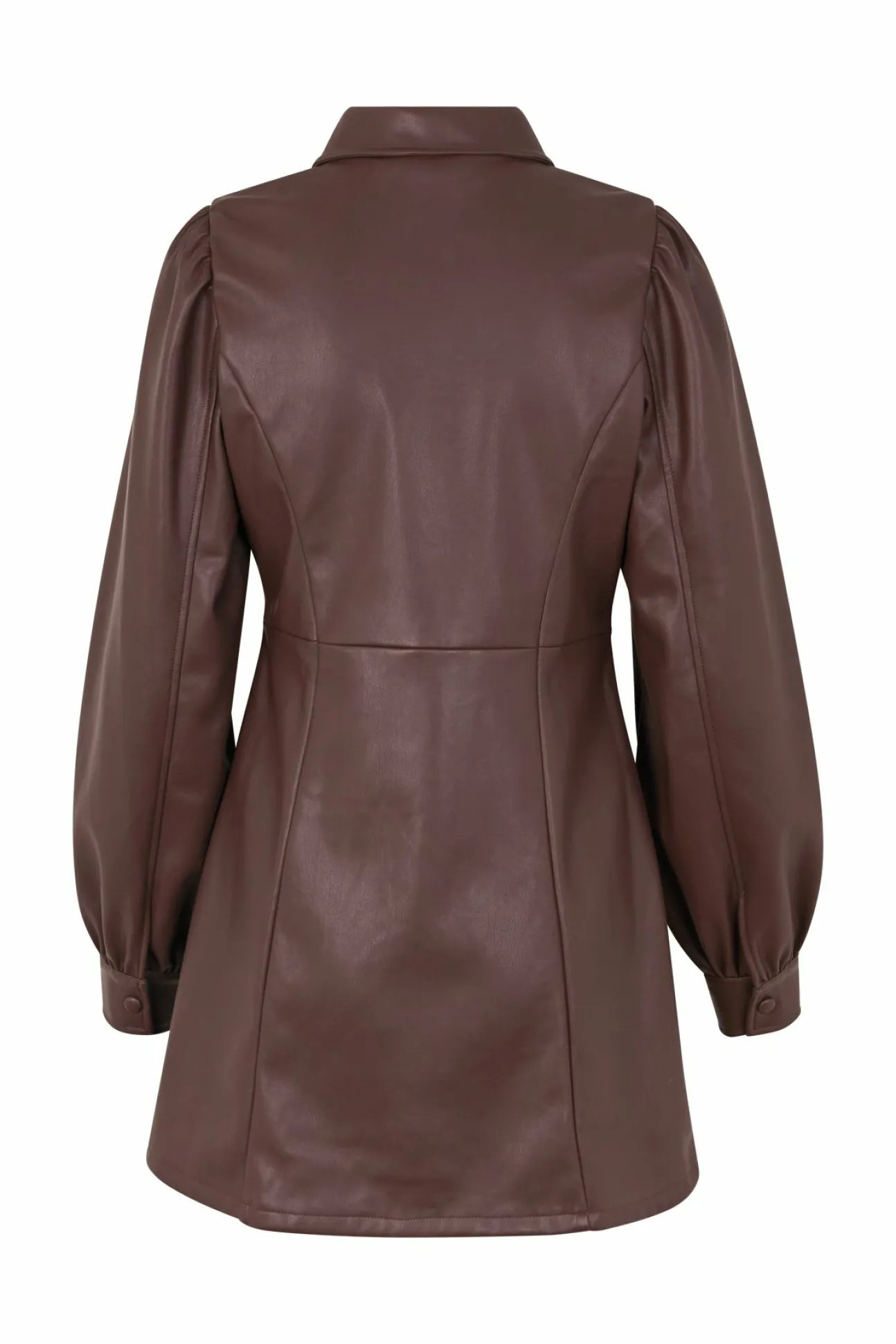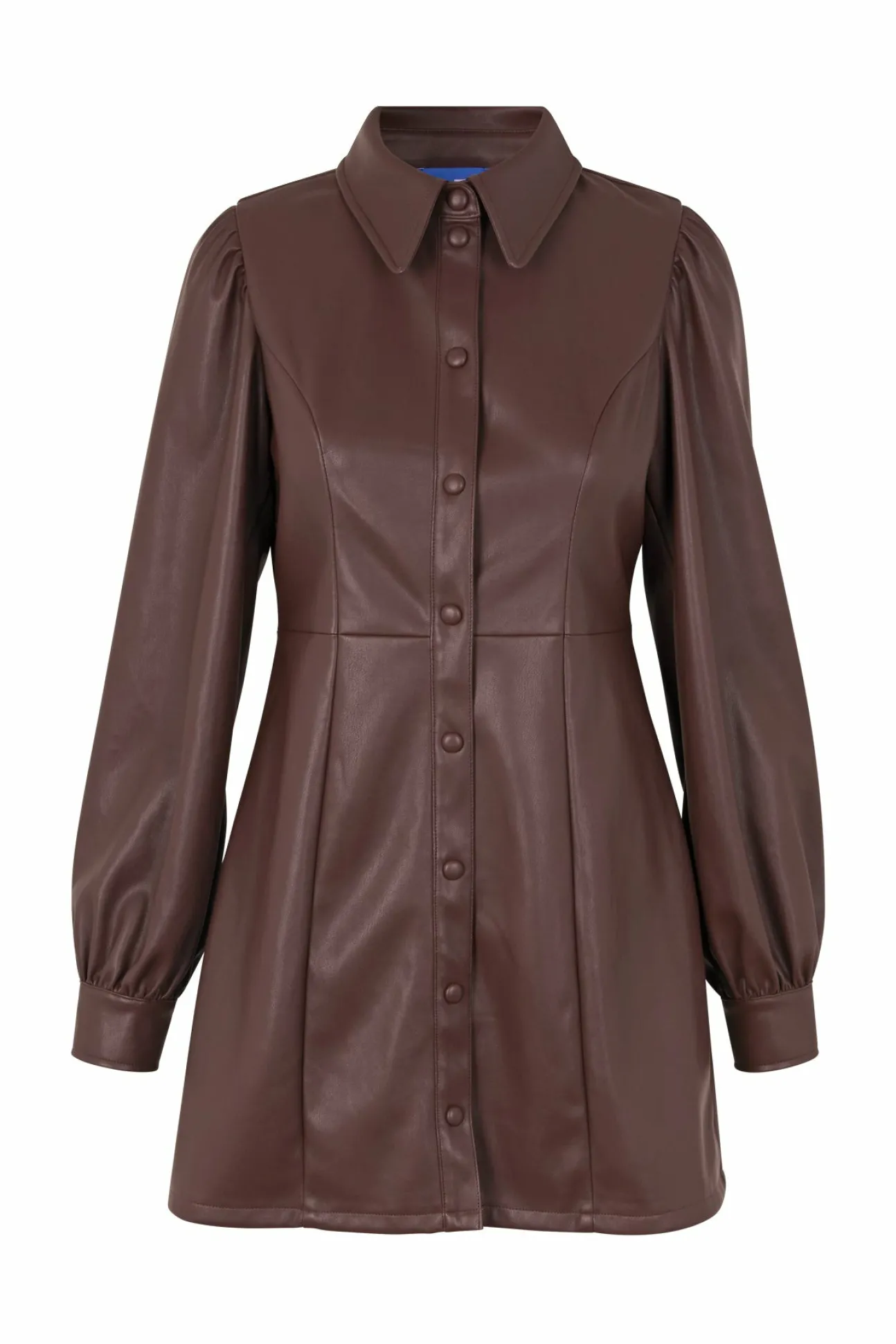 Figursyet Skjortekjole I Læderlook Med Lange Ærmer Og Knapper Foran. Fremstillet Af 100% Polyurethan.