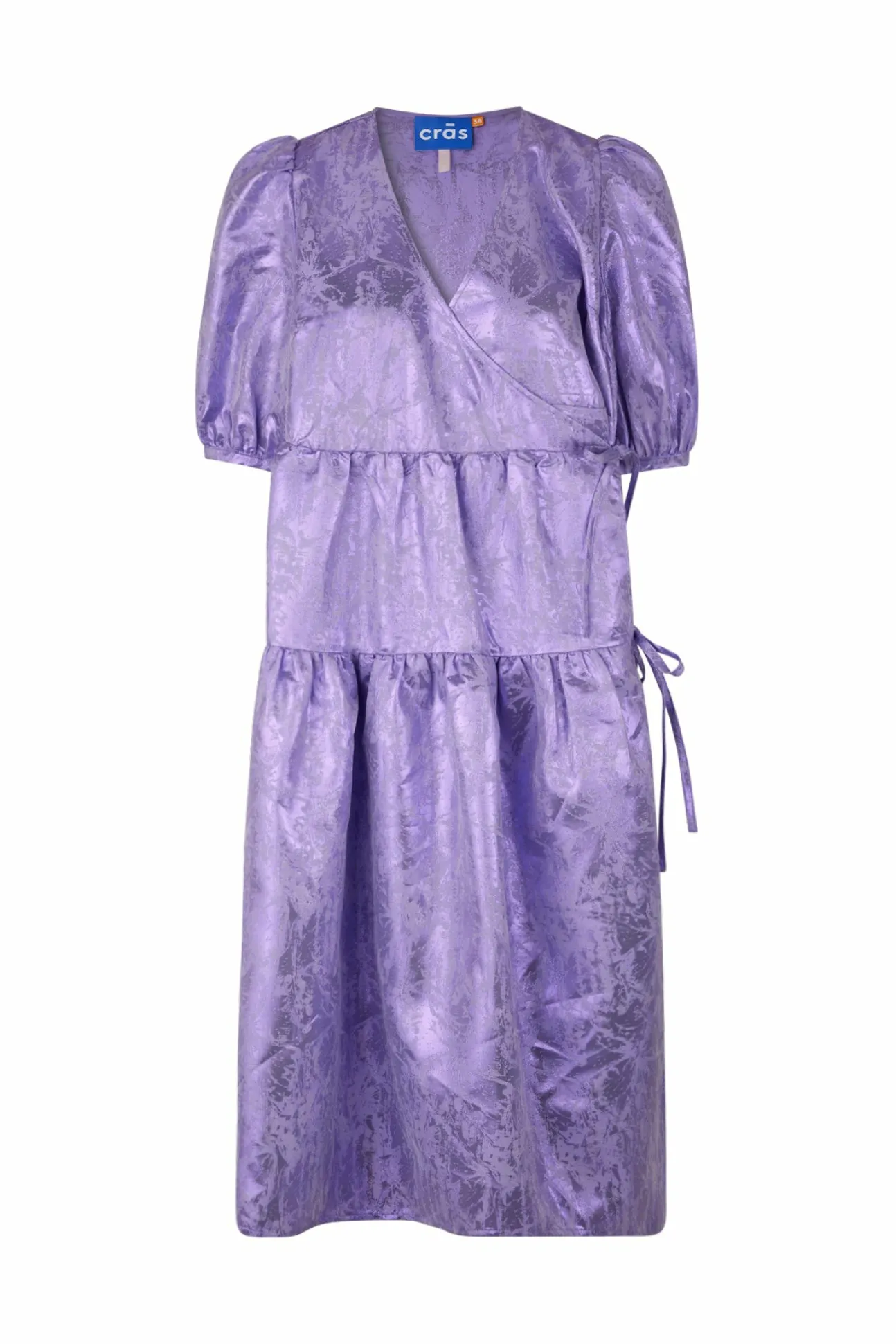Smuk Slå-Om-Kjole I Skinnende Jacquard-Stof Med V-Udskæring Og Elastisk Ærmeåbning. Fremstillet Af 80% Genanvendt Po…