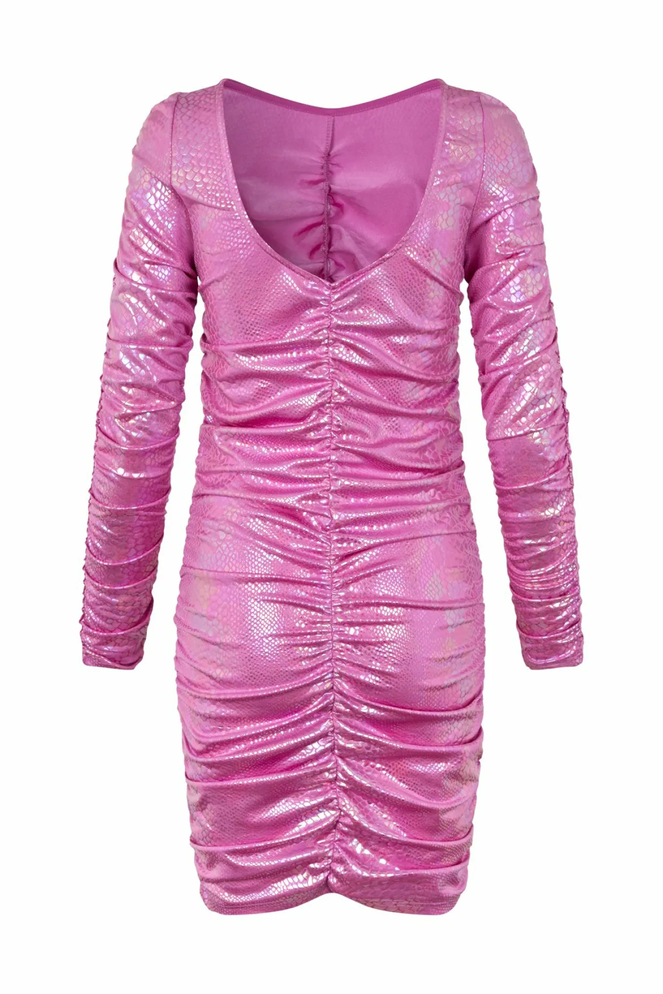 Strækbar Kjole Med Lange Ærmer, Dyb Udskæring Bagpå Og Masser Af Rynker Ned Langs Midterdelen Både Foran Og Bagpå For Et Cool, Flatterende Look. Fremstillet Af 93% Genanvendt Polyester Og 7% Elastan.