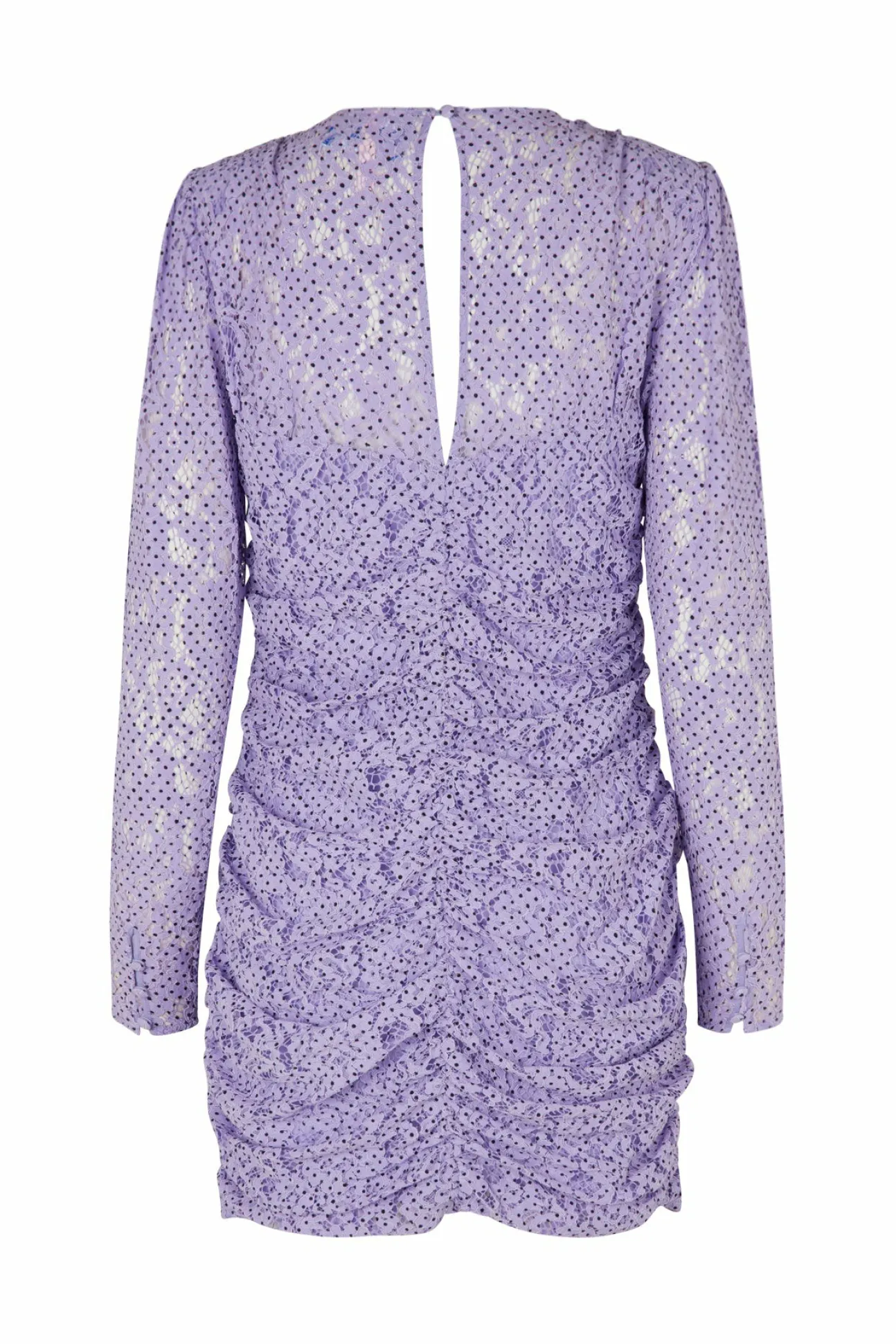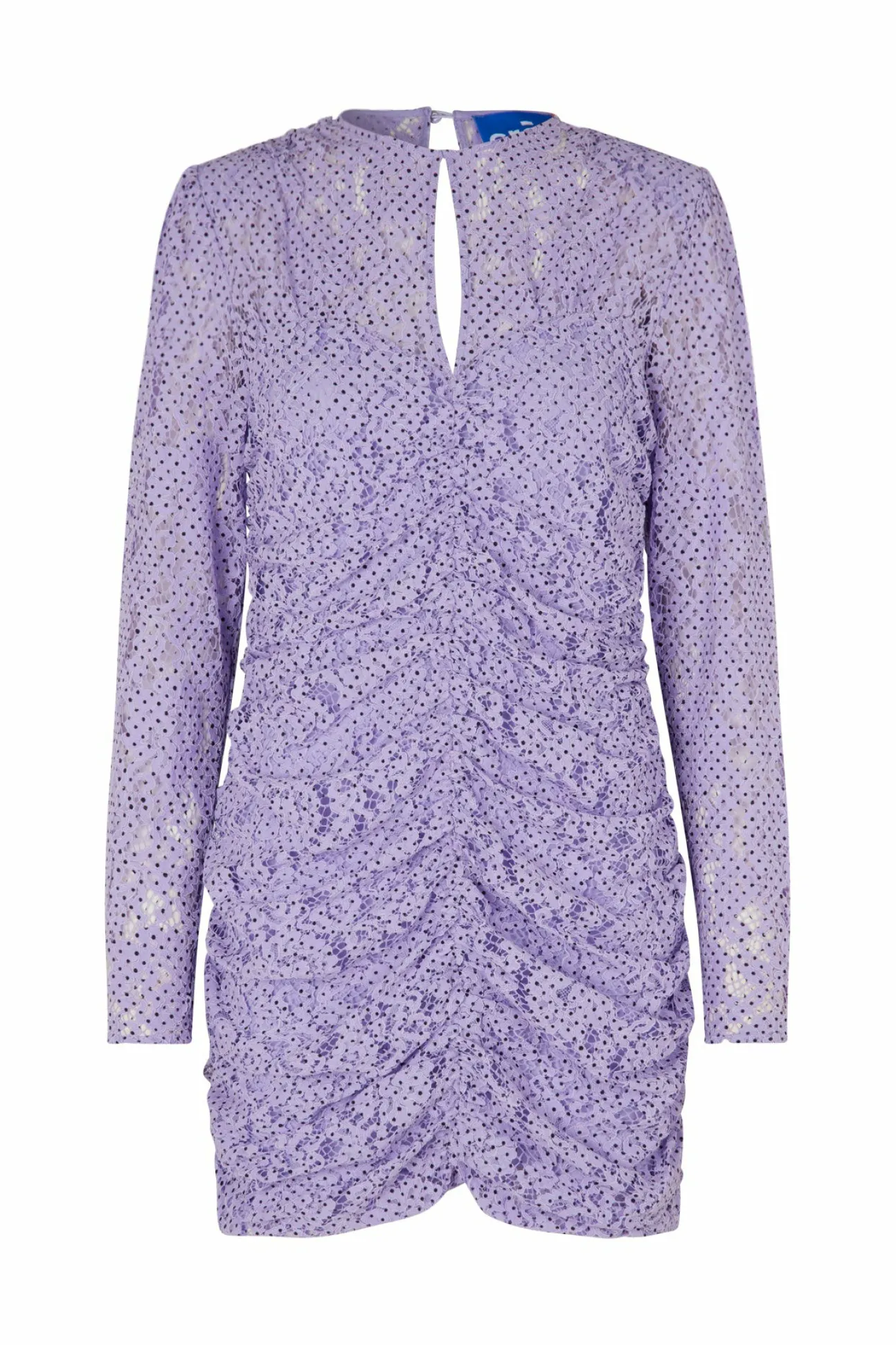 Flatterende Blondekjole Med Nøglehulsåbninger I Halsen Og Ryggen. Kjolen Draperer Smukt På Grund Af Masser Af Rynker Både Foran Og Bagpå. Fremstillet Af 65% Bomuld Og 35% Polyamid.