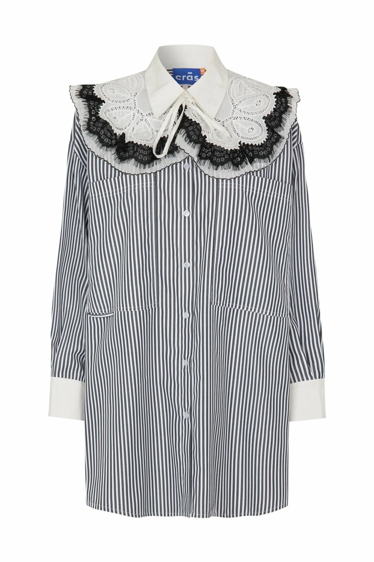 Lang, Stribet Oversized Skjorte Med Super Cool, Overdimensioneret Aftagelig Krave. Fremstillet Af 100% Genanvendt Polyes…