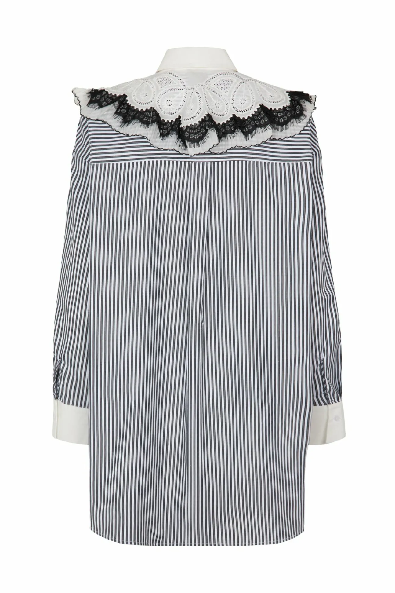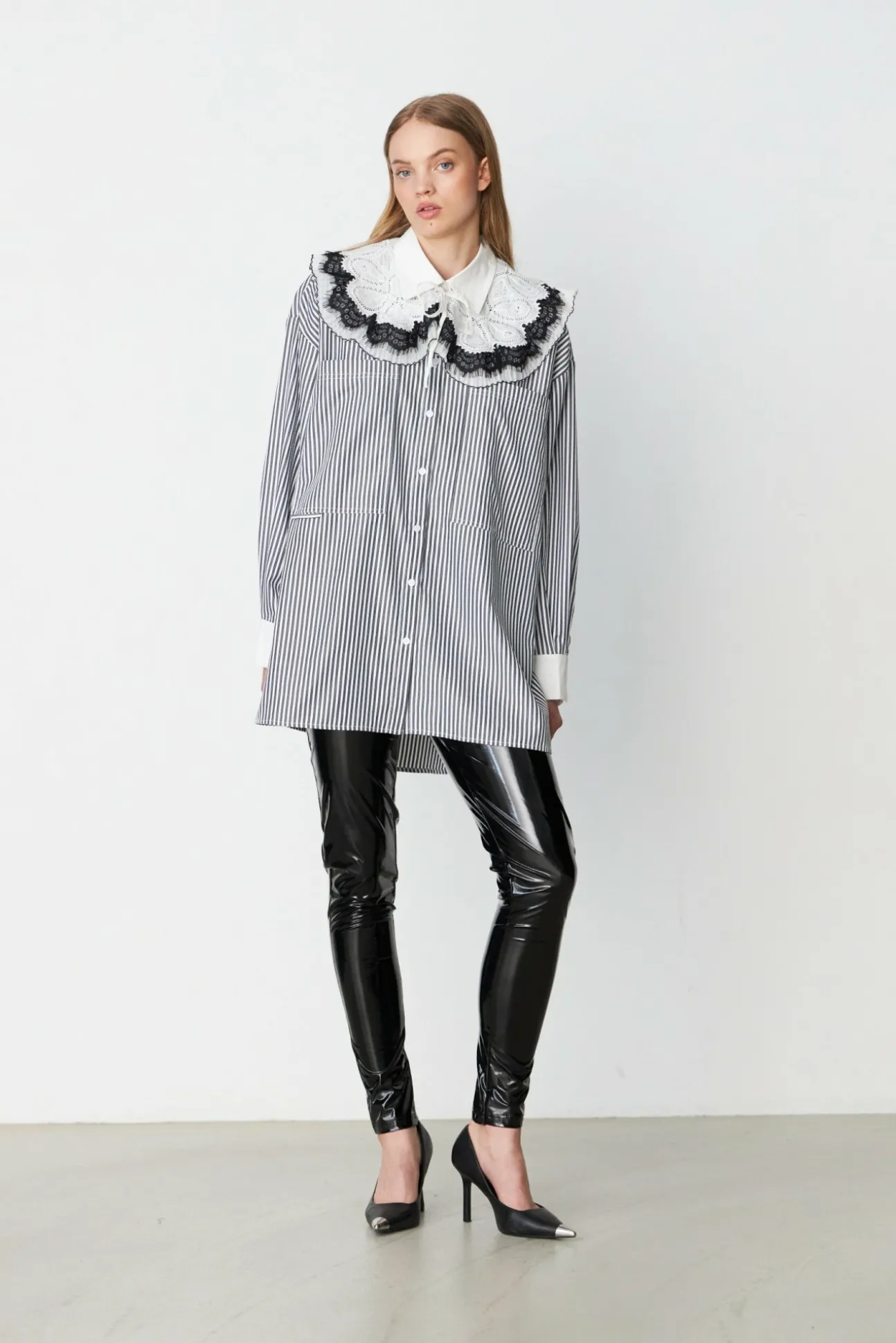 Lang, Stribet Oversized Skjorte Med Super Cool, Overdimensioneret Aftagelig Krave. Fremstillet Af 100% Genanvendt Polyester.