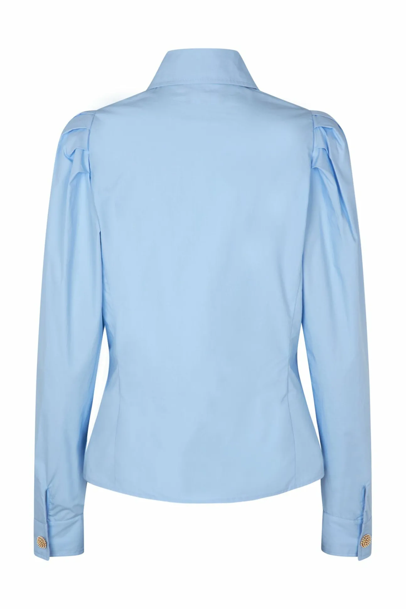 Faconsyet Skjorte Med Lange Pufærmer Og Dekorative Gyldne Knapper. Fremstillet Af 100% Økologisk Bomuld.