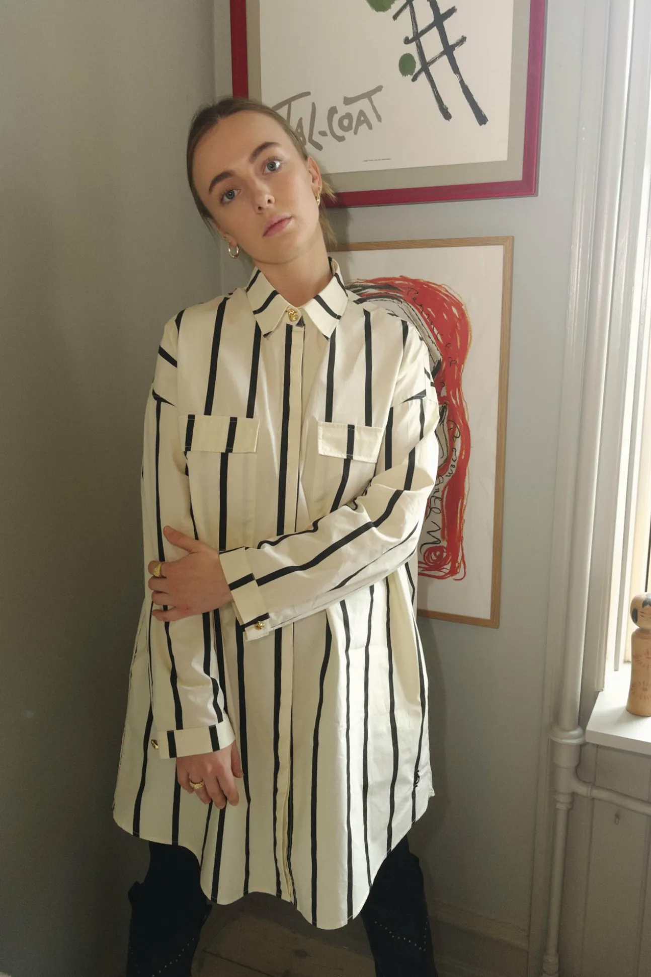 Denne Oversized Skjorte Er Fremstillet Af Førsteklasses Bomuld Og Har Seje, Iøjnefaldende Striber, 2 Store Brystlommer Og En Cool Guldknap Ved Halsåbningen. Den Perfekte Statement Skjorte! Fremstillet Af 100% Økologisk Bomuld.