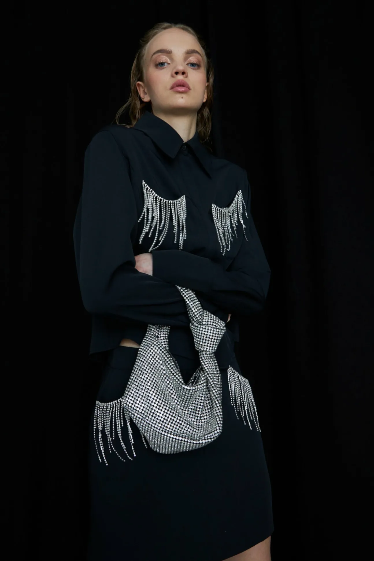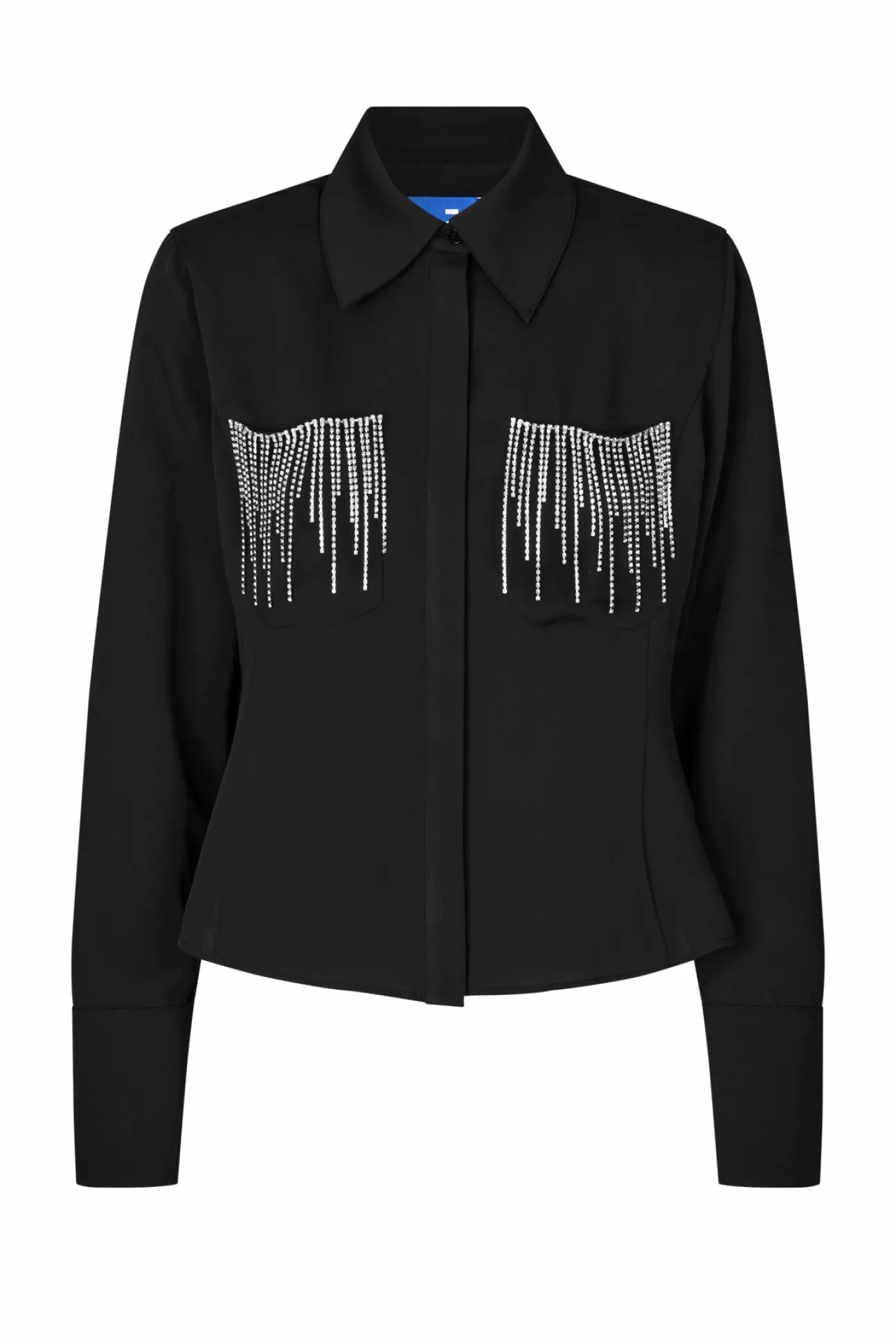 Super Fed Skjorte Med Lange Ærmer Og Dekorative Sølvfrynser På Brystlommerne. Fremstillet Af 97% Genanvendt Polyester Og 3% Elastan. Match Med Remi Nederdel.