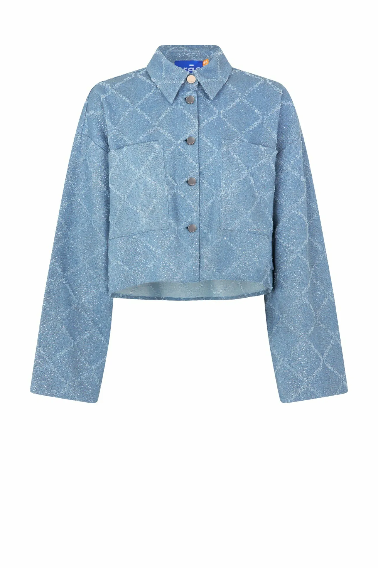Glittrende Denimjakke I Oversize Pasform Med To Brystlommer Og Brede, Lange Ærmer. Fremstillet Af 95% Økologisk Bomuld Og 5% Viskose.